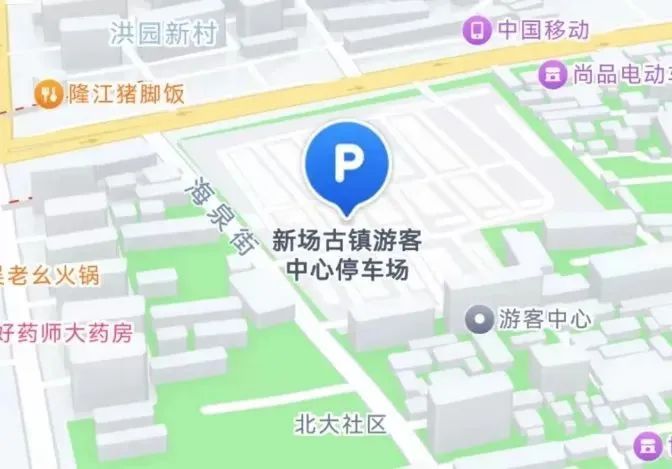 古镇游客车辆优先停放海泉街128号新场古镇游客中心停车场。