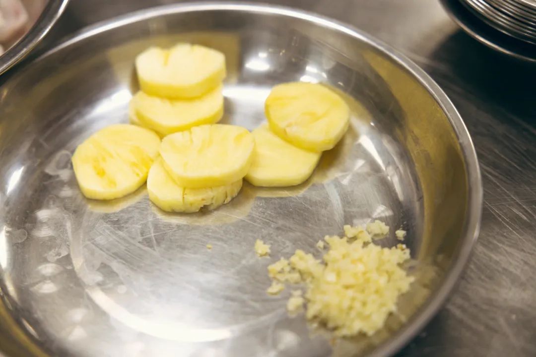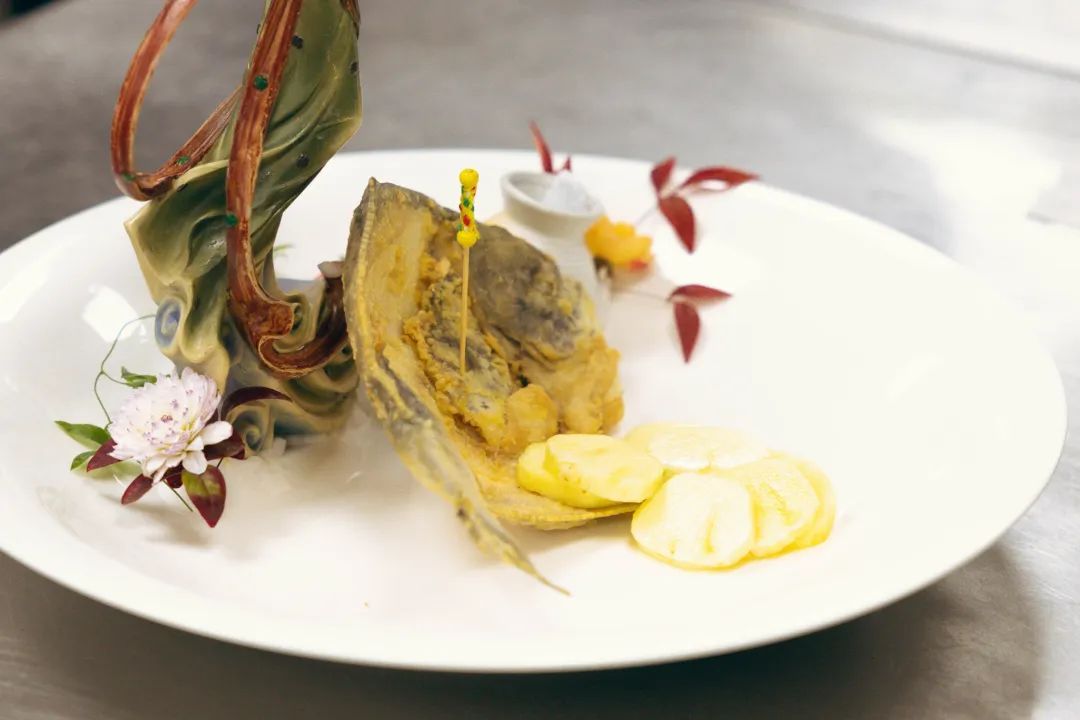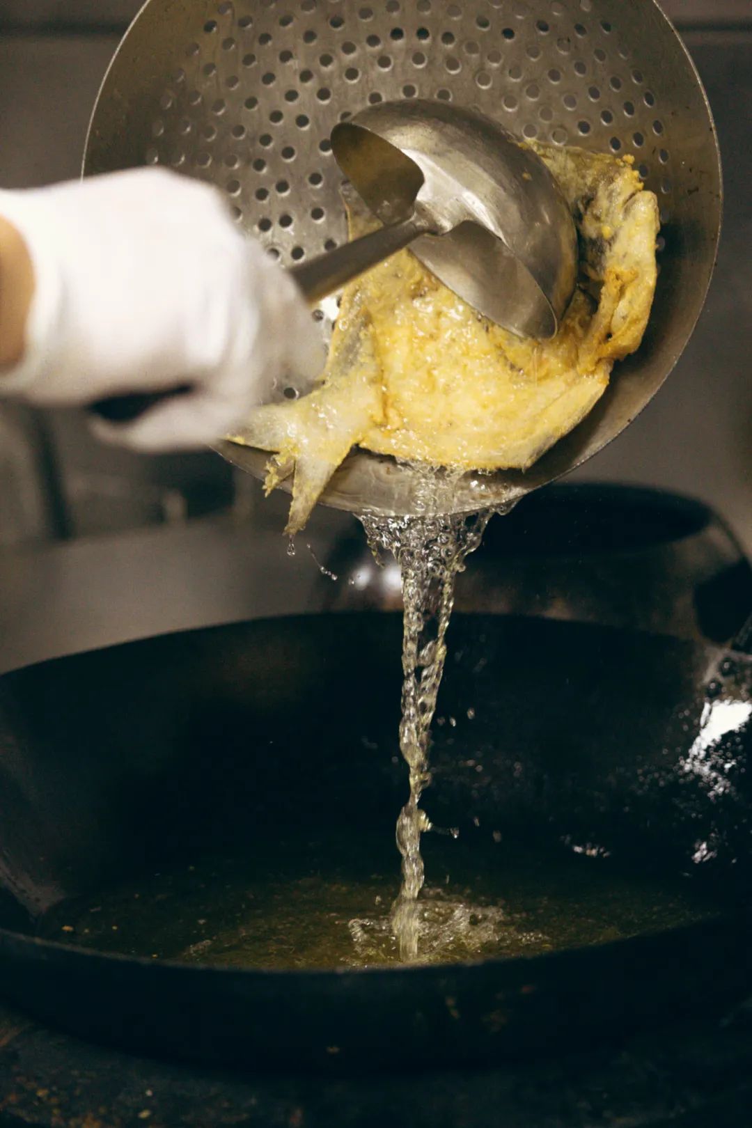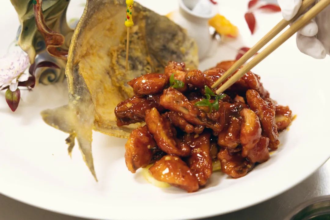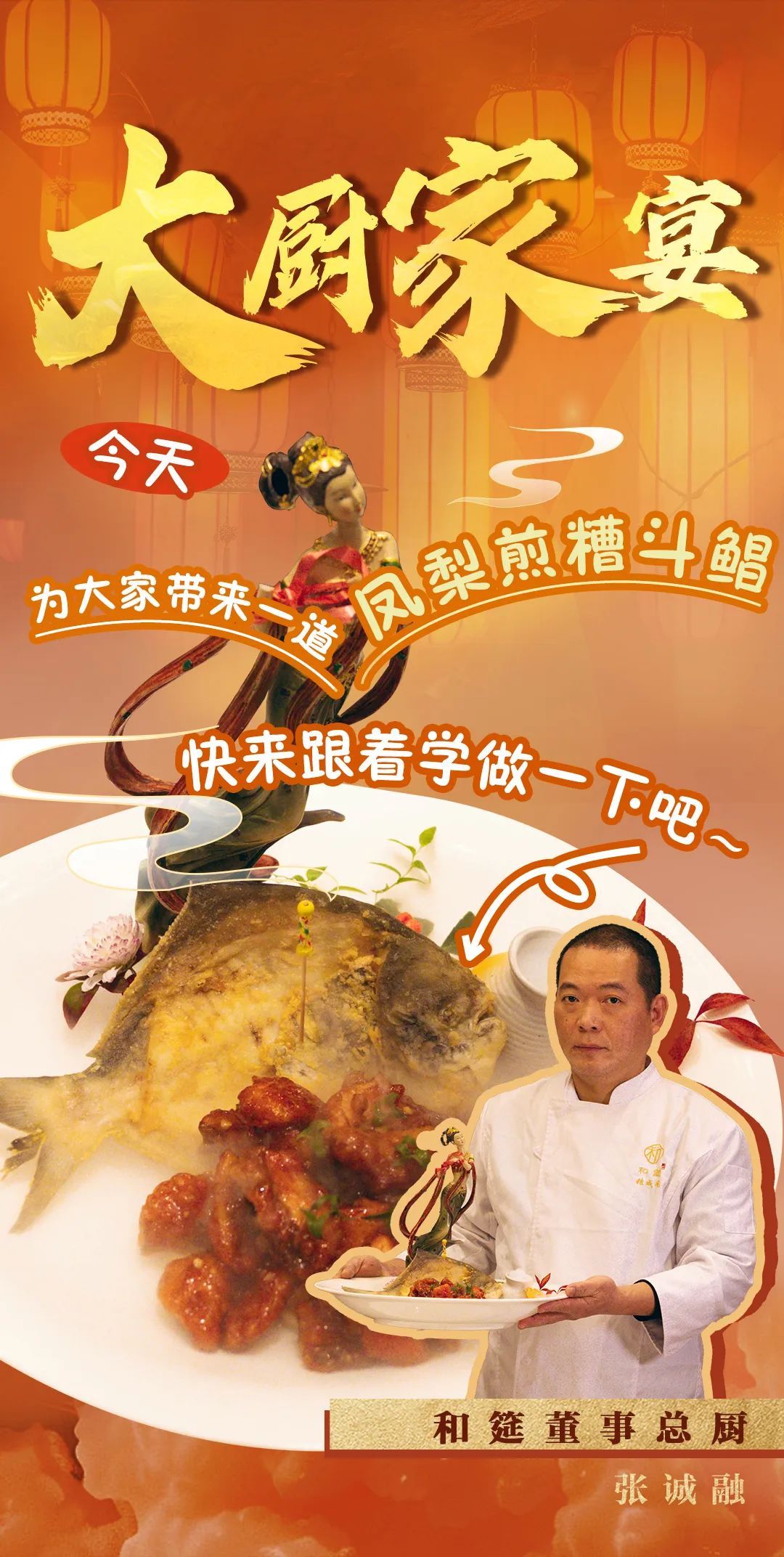 人间烟火气,最抚凡人心 幸福就藏在每天的粗茶淡饭里…… 家人围坐,灯火可亲 桌上美味佳肴 耳边欢声笑语 这就是中国人最向往的春节场景 春节假期 杨浦区融媒体中心为大家带来 “大厨家宴”系列 教你在家几步 做出星级大厨的味道 春节的团圆时刻 鱼是餐桌上不可或缺的美味 象征着年年有余 希望大家新的一年里 都能心想事成 生活幸福美满 PART 01 原材料 主食材:白鲳鱼 配料: 生姜 凤梨 蛋液 盐 味精 白糖 料酒 红糟 生粉 面粉 五香粉 鸡汁 蚝油 凤梨煎糟斗鲳 选用鲳鱼作为主料 “鲳”和“昌”同音 有着“繁荣昌盛”吉祥之意 红糟则是闽菜的独特滋味 红红火火的菜色 让人心情愉悦 Part 02 制作步骤 1.将鲳鱼的鱼鳍修整干净,拆肉切成长条形状,鱼骨另有他用。 2.鱼肉加入生姜末去腥,再加入盐、白糖、味精、料酒、红糟抓拌均匀。随后加入地瓜粉、生粉、面粉、少量水和油,再次抓拌,腌制十分钟。 3.起锅烧油,拆下的鱼骨用蛋液涂抹均匀,涂抹面粉、生粉,以弧形入锅炸至金黄,其形状似碗。 4.将腌制好的鱼肉分批炸至酥脆。 5.凤梨入沸水捞过放入鱼碗。 6.用生粉、蚝油、味精、白糖、盐、鸡汁、五香粉和适量清水,调制酱汁。热锅冷油,加入酱汁与鱼肉,翻炒均匀即可。摆盘后撒上葱花点缀。 Have A Rest 新年到来,享受这团圆的时刻 鲳鱼外酥里嫩 凤梨汁水丰富 酸酸甜甜的口感 老人小孩都爱吃 Part 03 菜品展示 这道 凤梨煎糟斗鲳 你学会了吗? 赶快动手试一试吧