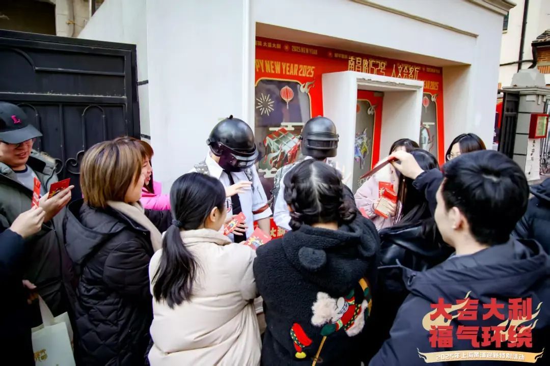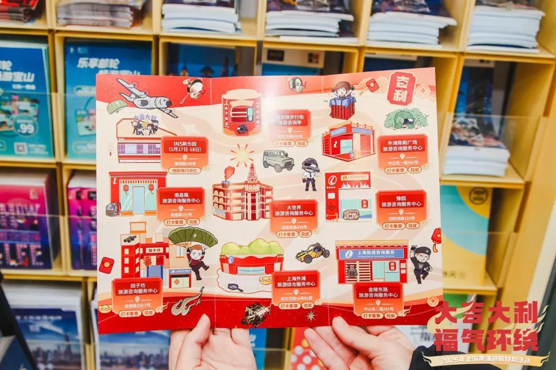 除了上述精彩的快闪活动,本次迎新活动还特别设置了“集福章,领红包,接好运”的新春祝福互动体验环节。在2025年2月5日前,市民游客均可以在黄浦区的8个旅游咨询服务中心免费领取新春定制版游黄浦地图。在到达指定位置打卡后,市民游客即可联系对应点位的工作人员进行盖章,集齐盖章后即可抽取黄浦文旅与手游IP的联名款新春福气红包,红包内会随机放置精美的游戏周边、商户优惠券、神秘礼品等,传递满满的新春好运。这些红包设计精美,巧妙地利用了数字IP文化的点缀为传统中华文化增添新的生机,以更时尚、更潮流的形式打造更独特的中国年氛围。