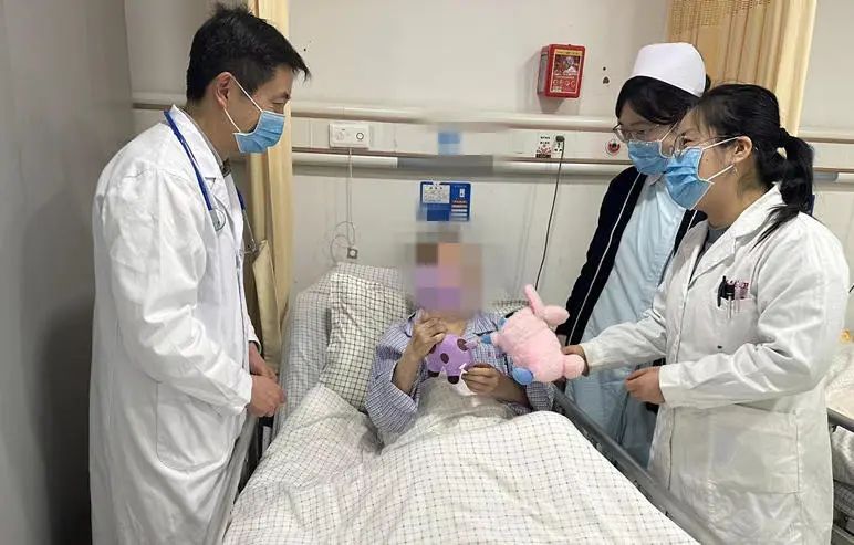 “袁阿姨,这两天睡得好吗?这个小蛇宝宝送给您,祝您蛇年快乐!”走访了家庭病床的患者,赵雪回到长寿社卫中心,又和病房医生一起看望了住院患者袁阿姨。袁阿姨是赵雪在工作站接诊期间遇到的一位独居的老人,患有多种基础疾病,看病成了老人最难的事。由于无人照顾,老人在生活中发生过多次“险情”。前不久,老人在家里突然晕倒,居委会紧急送医,医生确诊老人得了脑梗。赵雪得知后,建议等老人出院就转入社卫中心,做后续康复治疗。“太谢谢你啦,赵医生!在这里吃得好,有医生、护工照顾,我恢复得很好。”