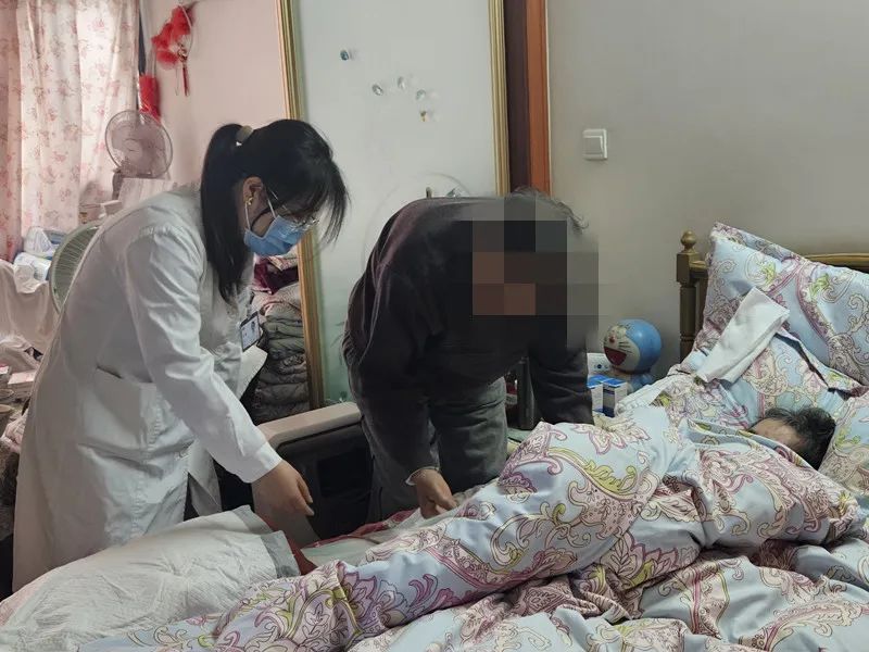 忙完了工作室的接诊,赵雪和护士又马不停蹄来到家庭病床患者王阿姨家中。“王阿姨,这两天感觉还可以吗?有没有不适感?”来到居民王阿姨的床边,赵雪搓热了双手,掀起棉被的一个小角,查看导尿管的情况。“之前的不适还是因为导尿管没有及时更换造成的。我们护士给您换一下,过节就不用担心啦。”换好了导尿管,赵雪又询问了王阿姨患有高血压的儿子用药情况。“之前三级医院配的药,通过延伸处方在你这边配了,方便不少。”王阿姨的儿子说,“年后我再过来找你配药。”