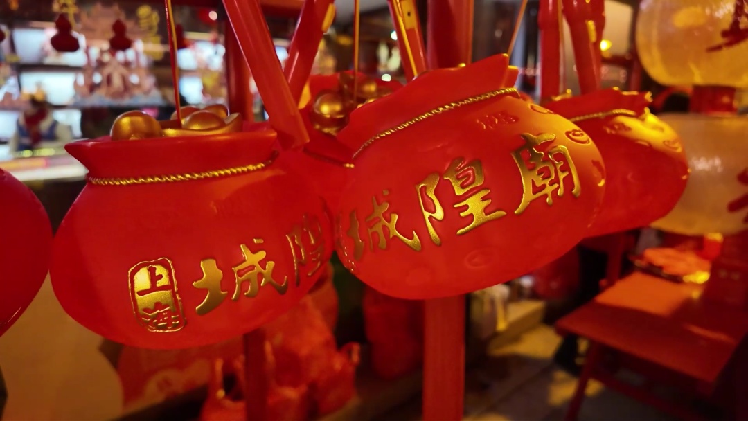 为迎接财神,上海城隍庙特别推出了文创产品“招财进宝”灯。这款灯以传统“钱袋子”为设计灵感,巧妙融合了道教文化与民俗元素。灯身上绘有象征福禄寿喜财的吉祥图样,寓意富贵盈门,财富环聚。灯顶三个元宝寓意三生万物,财源滚滚。在灯光映照下,汇聚四方财气,为持灯者带来好运与财富。