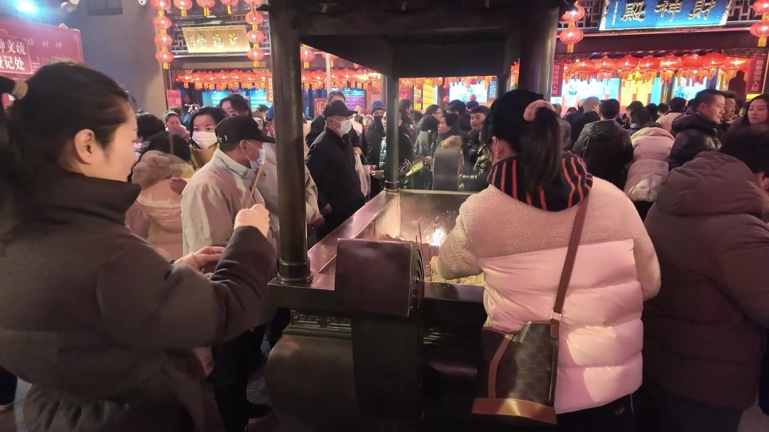 “为确保上海城隍庙迎财神活动的安全有序进行,我们警方、民警及辅警力量共计出动了50人。我们在庙门入口设置了蛇形通道,引导所有进香香客在志愿者的指挥下有序排队。此外,在庙宇的各个关键点位,我们都安排了志愿者和警力进行值守,确保整个活动流程平稳顺畅。春节长假未来几天,我们都将严格按照既定方案与庙宇方面紧密配合,共同维护春节期间城隍庙进香活动的和谐安宁。” 黄浦公安分局治安支队副支队长汤峰介绍。