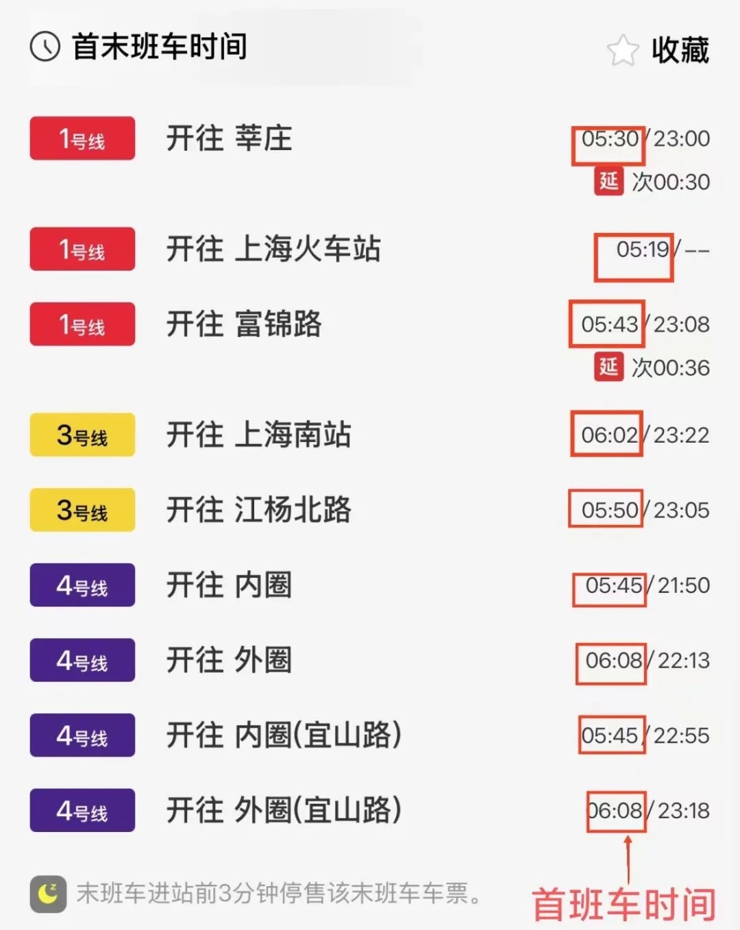 ↑ 上海站3条地铁的运营首末班车时间