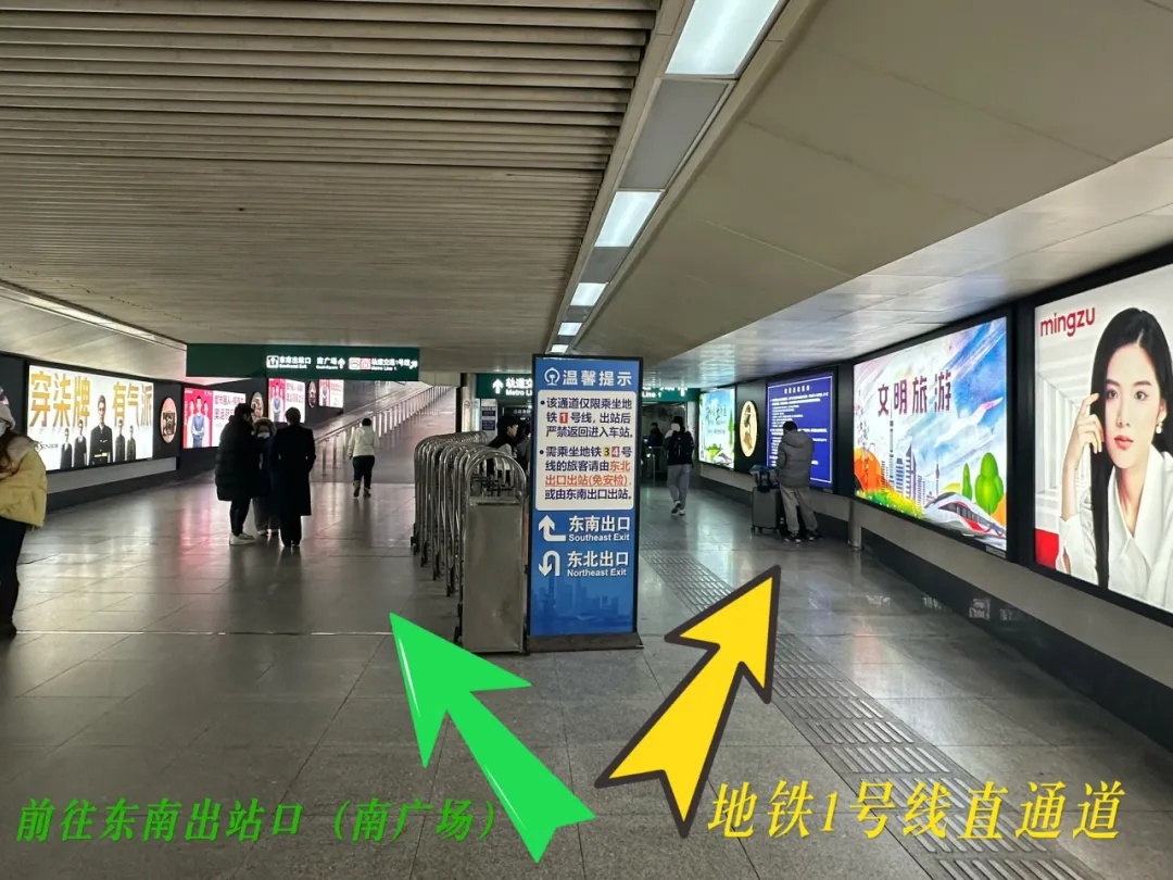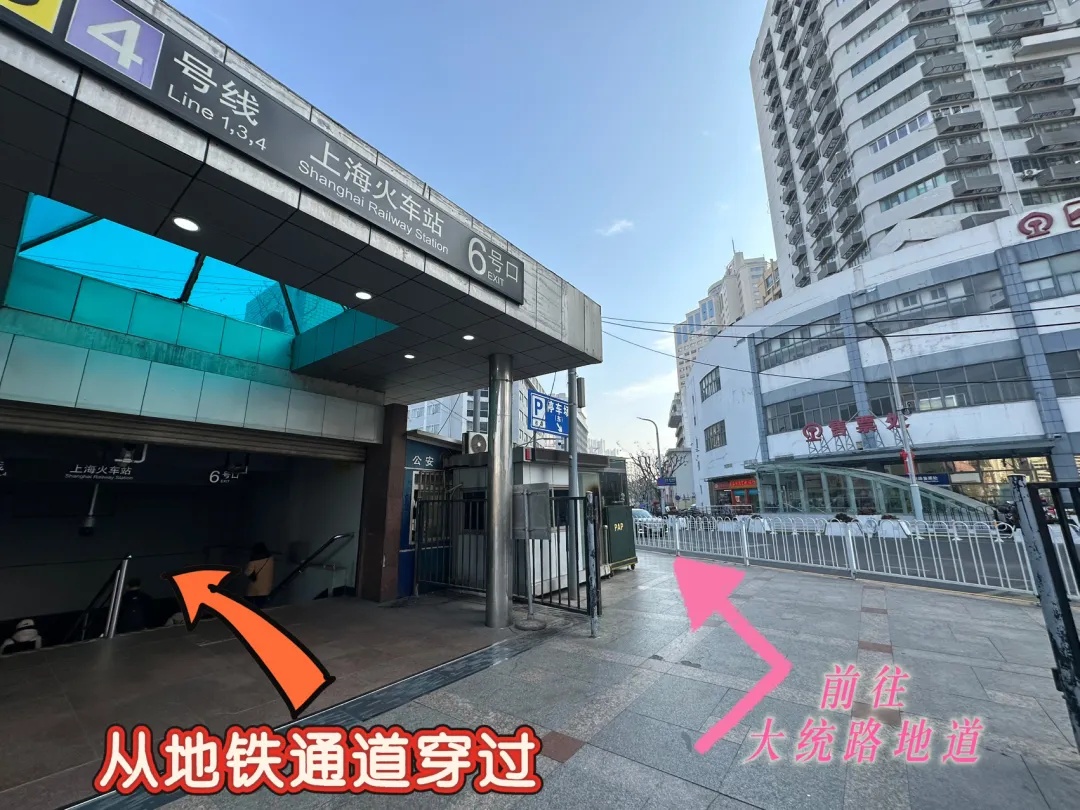 【从北往南】如您想从上海站北广场前往南广场:可以从地铁3、4号线10号口进入通道,从地铁3、4号线6号口出站到达南广场;通道关闭期间,请根据指示标牌,从大统路地道前往南广场。