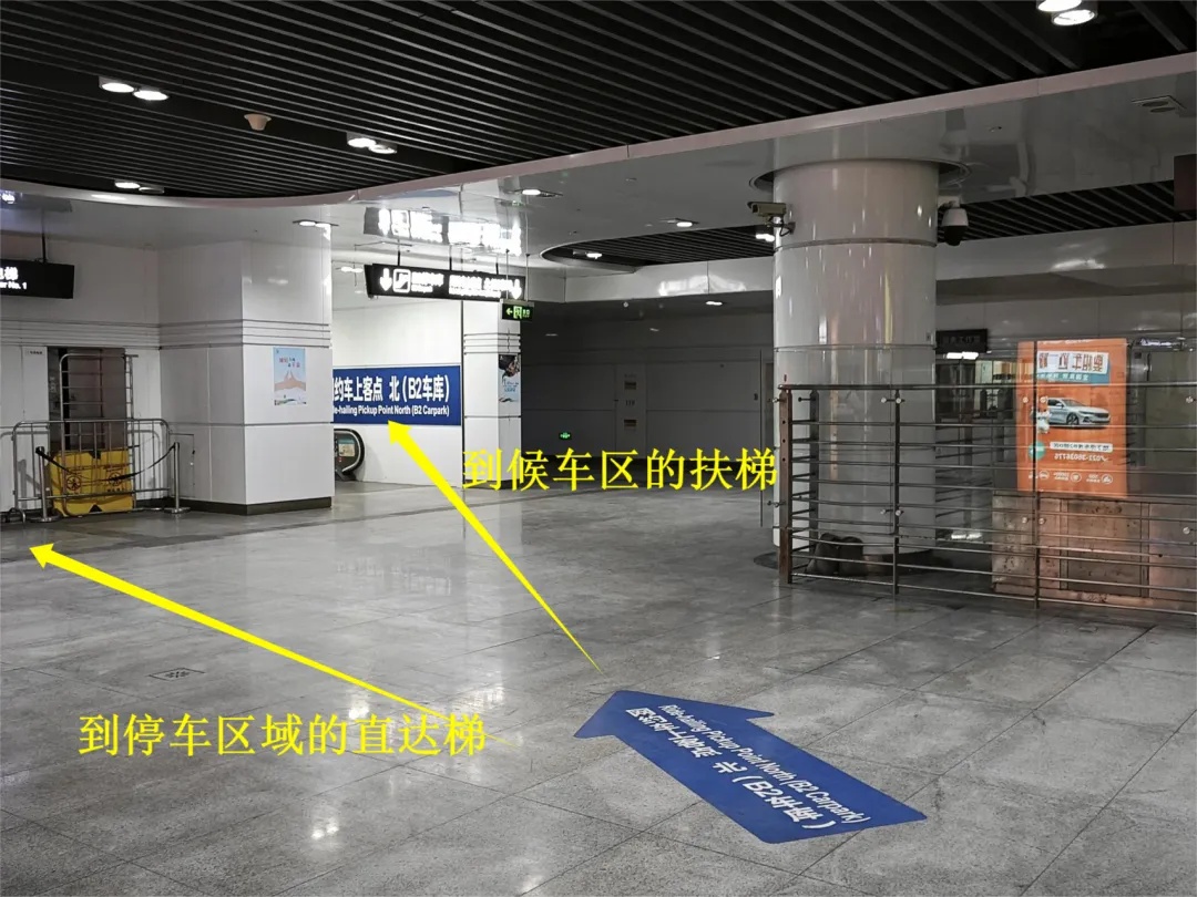 上海站北广场网约车上客点位置在地下停车库B2层,靠近上海站西北出口,从西北出口、东北出口出站后,根据现场指示标牌乘坐扶梯或者直达梯,到候车区等候,网约车上客点位要求“快上快下、即停即走”,不能长时间停留。