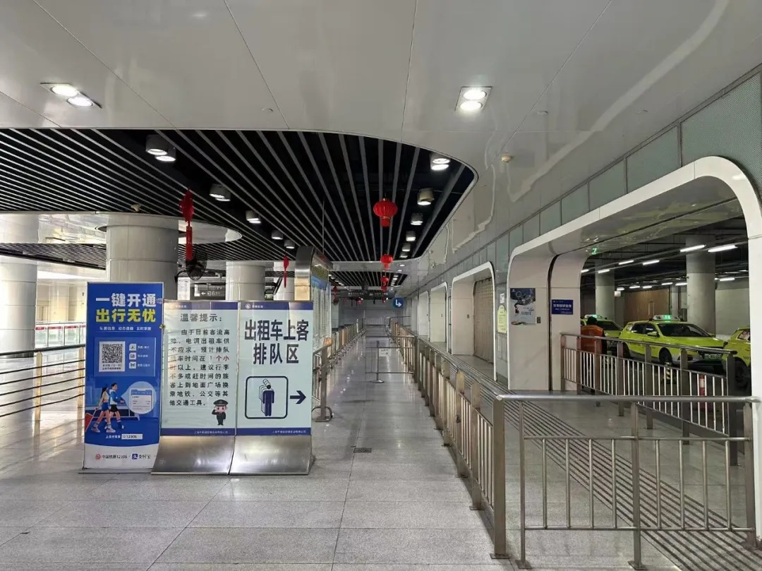 上海站西北出口、东北出口出站后,根据现场指示标牌,就可以到达出租车等候区。