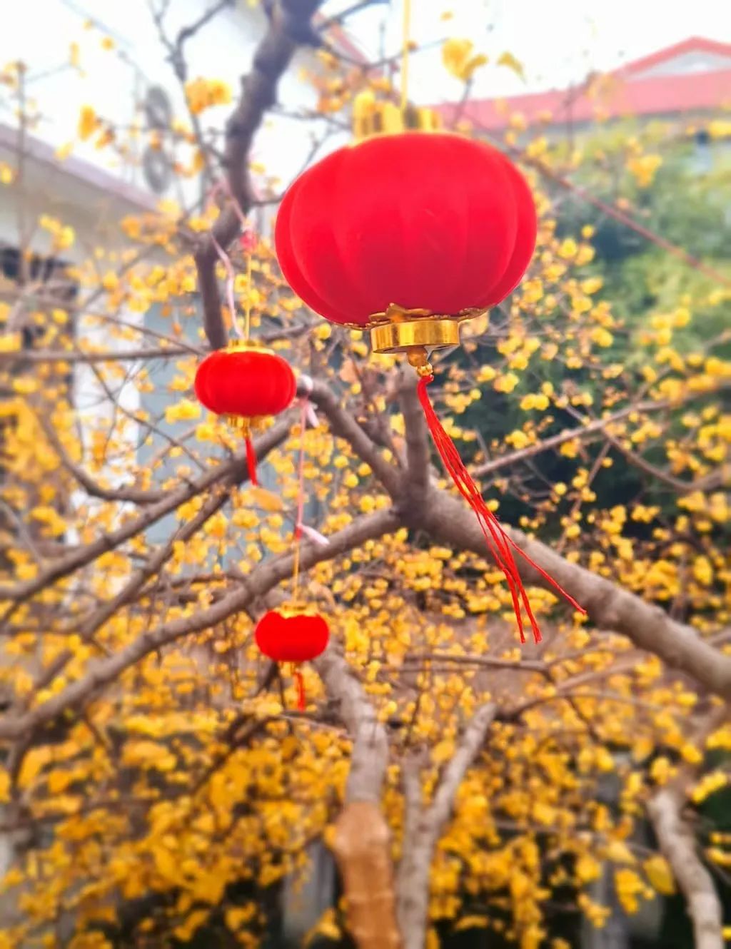 新年第一天去陆俨少艺术院观展,走进门囗,映入眼帘的是一个个红色的小灯笼挂在金黄色的蜡梅树上,显眼又喜庆。红灯笼随风飘扬,蜡梅花开香飘四溢,为新年增添了一份浓浓的节日氛围。