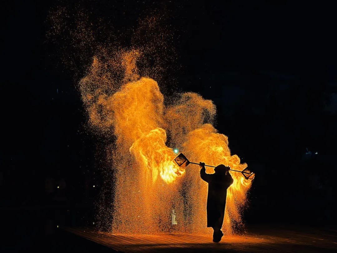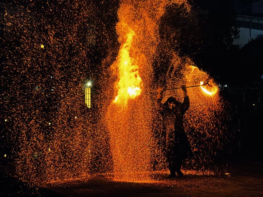 大年初一的夜晚,我在江西宜春温汤镇街头,邂逅一场火壶表演。表演者双手舞动,壶嘴火焰肆意。在人们的惊呼声中,我想起那句“火除邪祟,百家安宁”,拿起手机定格这一幕。