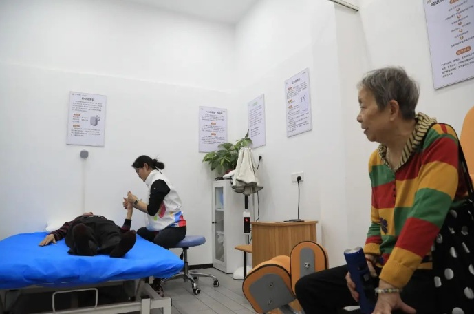 这个家门口的养老服务站打破空间局限,延展服务边界,扩增受益人群,是一个集多维度、多专业、多团队融合的养老服务平台,设有共享活动、康复训练及长者休息等空间,提供包括养老服务咨询、身体机能训练、微日托、助餐、社区康健服务在内的服务。