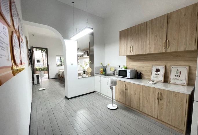 通过这个小巧温馨的共享活动空间,除了实现社区长者助餐服务空间的功能外,还可在此开展小范围的社区活动,辖区内的共建单位也会通过这个平台深度链接社区,以主题活动、科普讲座及志愿服务的形式参与社区赋能;将在有限的空间发挥最大价值的康复训练空间,配备专业的康复师、社工以及适合老年人的康复器材,通过康复设备叠加生活康复及认知障碍照护方面的国际专利技术,围绕运动、饮水、膳食、睡眠、代谢、心理等6个影响健康的要素,满足社区长者预防和康复的刚性需求,让康养服务真正下沉社区、融会贯通。
