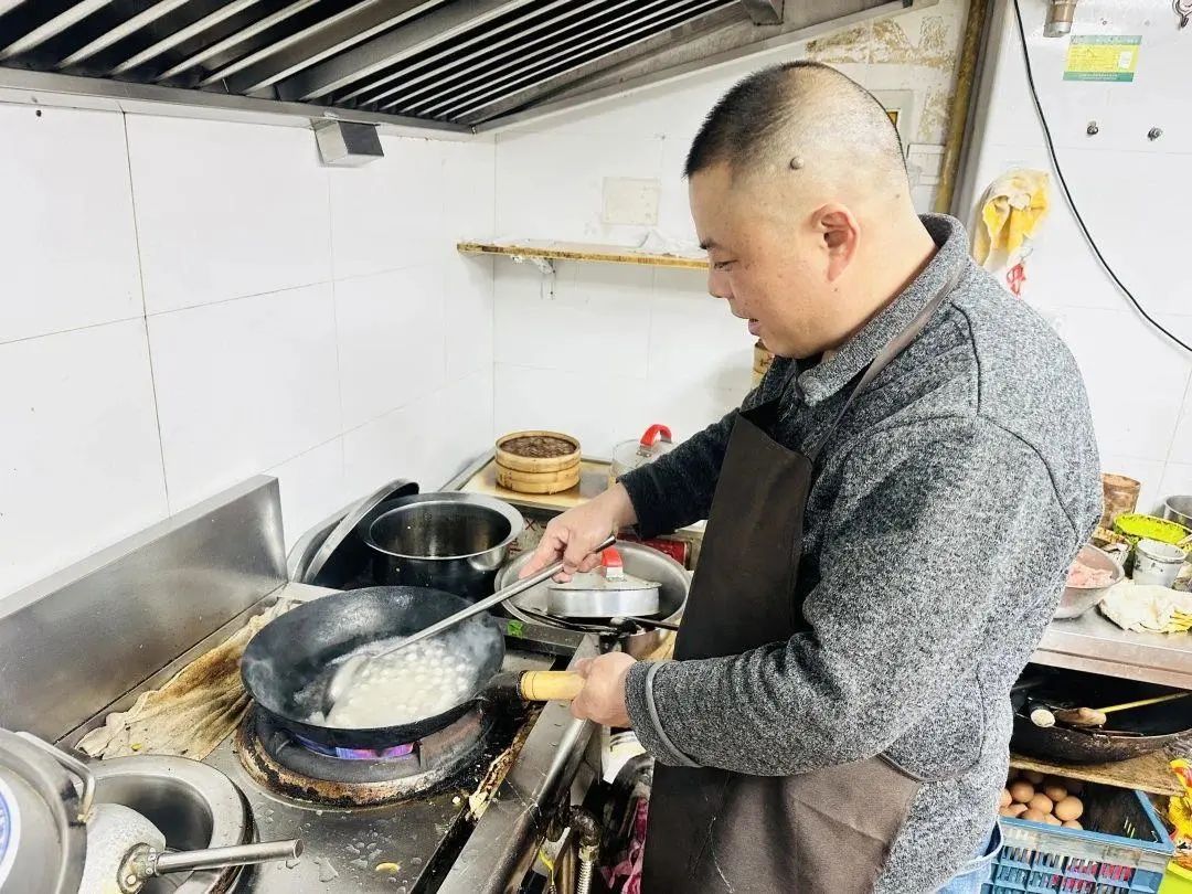 事先,工作人员将现场布置上灯笼和福字,年味十足。餐桌上,粤弘记、老鸿兴、小杨生煎、邻里果品等商居联盟沿街商铺送来了各自的招牌菜,有白斩鸡、有烤鸭、有海鲜烩牛肉,还有汤包、醉鸡煲等等,商居联盟党支部书记花国民更是撸起袖子,亲自炒制了拿手菜。