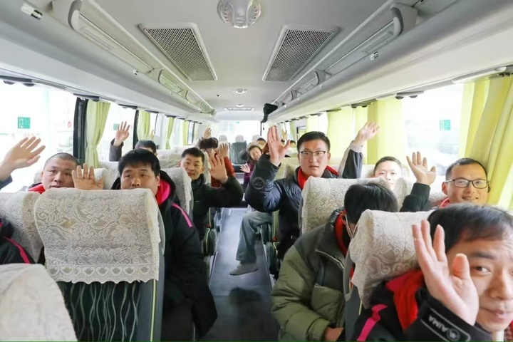 “欢迎你们回无锡,祝你们工作顺利、生活开心。”在接站现场,无锡市、锡山区人社系统相关负责人和企业工作人员早早就在出站口守候,第一时间为返锡职工戴上红围巾,送上祝福。“这次返岗,政府安排了大巴车‘点对点’将员工接送到公司,大大节约了我们组织员工返岗的精力和成本。”江苏爱玛车业人事经理李美娟介绍,企业将于明天全面复工,集中统一接送返岗员工为复工复产按下了“快进键”。