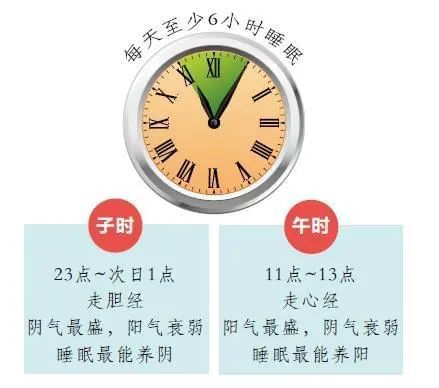 子午觉:上午11点到下午1点之间(午时)是心经循行的时间,此时可以小睡半小时,让精力尽快恢复;晚上11点到凌晨1点之间(子时)是肝经循行时间,晚上11点前就寝效果最好,可以减轻营养消耗,增加肝脏血流量,达到养肝的目的。