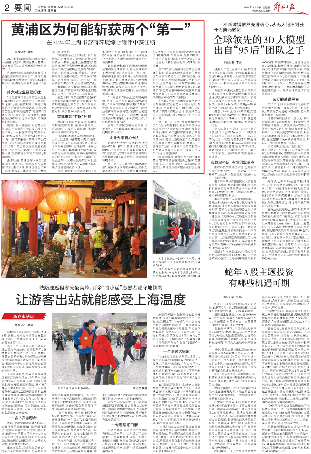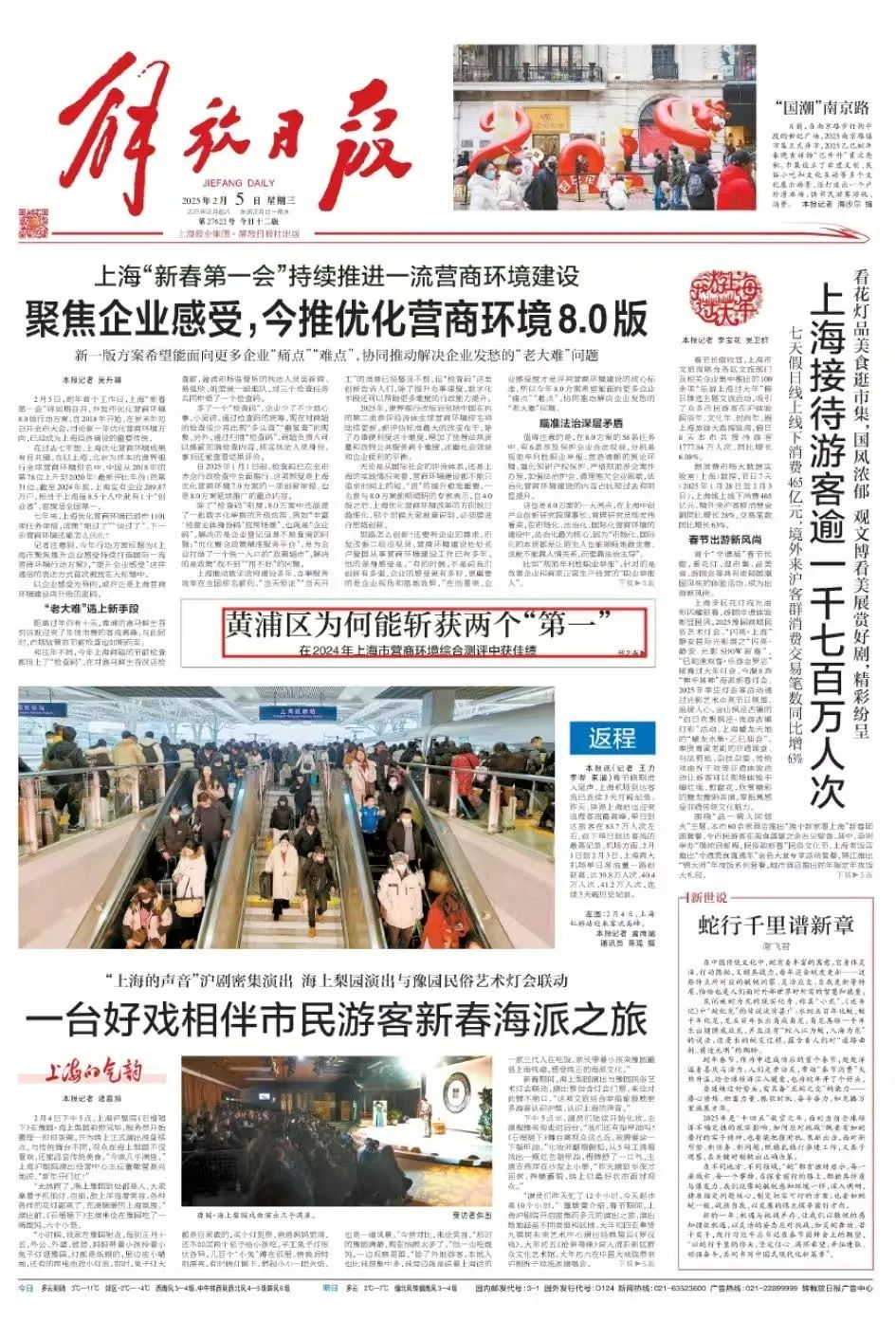 春节长假后,黄浦区将启动“宜商黄浦”营商环境主题周活动,发布“无感监管”试点、“营商合伙人”等新举措,将更贴心、精准的政策和服务送到企业身边。