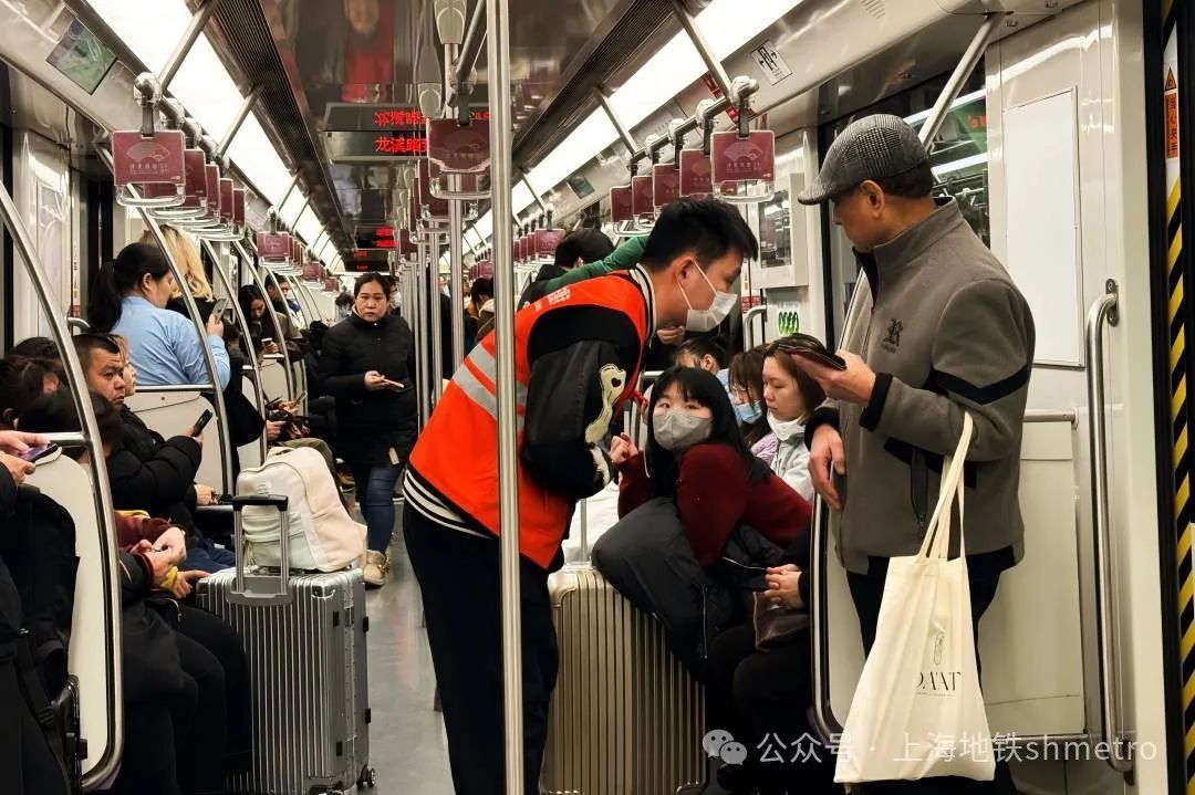 今年春运期间,鉴于10号线Y型线路的特殊布局,为了帮助乘客更直观、便捷地抵达虹桥火车站,地铁工作人员化身“天使”,从站台深入车厢内部。他们利用便携式扩音器,向乘客清晰地传达列车行驶的目的地信息,以防止乘客因误乘而耽误返乡行程。