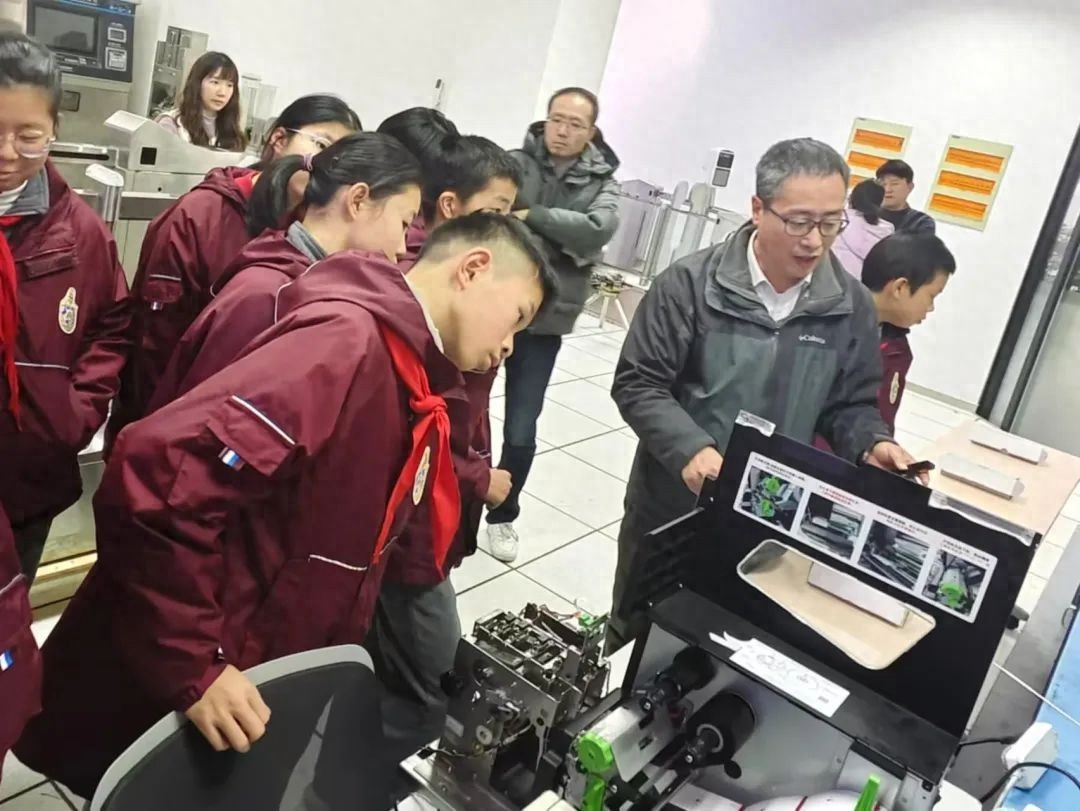 在周向争轨交自动售检票系统劳模创新工作室,学生们分批次进行了为期两天的探访。周向争根据学生的年龄层次,深入浅出地讲解了轨道交通自动售检票系统的演变历程、工作原理及其核心技术,并引导孩子们参观工作室中的先进实验设备。他还现场演示了生物识别技术的应用实例,如面部识别、虹膜扫描和掌纹检测等,激发了学生们的科技兴趣。