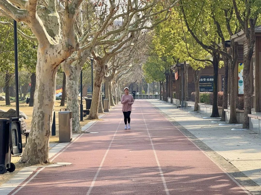 今晨松江气温偏低,最低气温在0℃附近徘徊,好在阳光充足,天气晴朗。上午9点,记者在中央公园看到,冬日阳光倾泻而下,天空晴蓝一片。虽然空气中弥散着阵阵寒意,但仍有不少市民在公园里或是跑步锻炼,或是带着孩子在公园里散步、嬉戏。