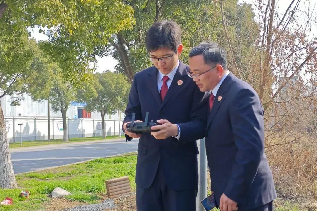 崇明区检察院检察官就一起国有土地使用权出让后土地长期闲置案件开展现场调查。