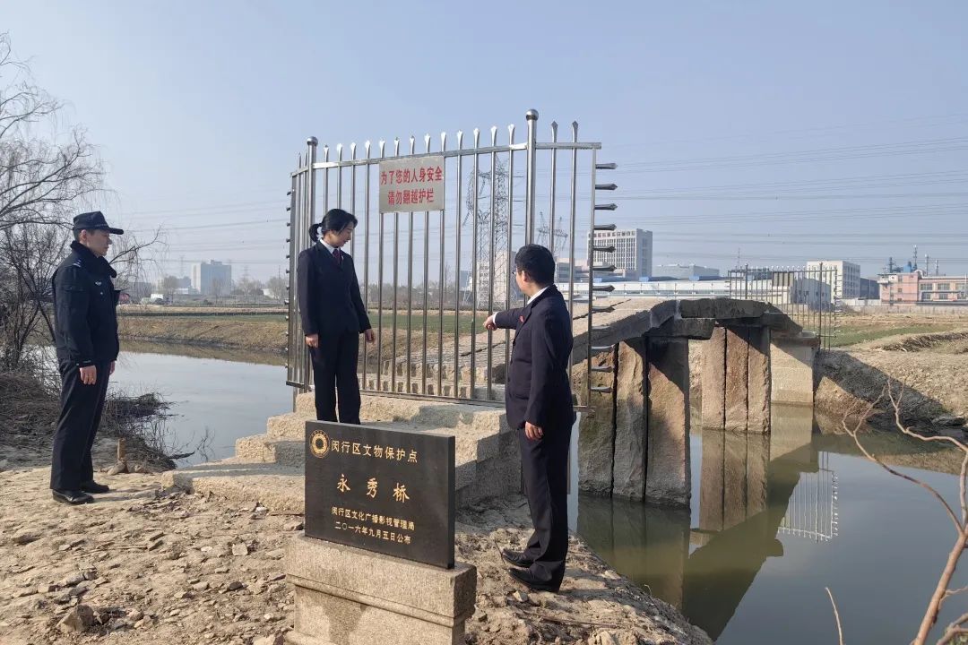 闵行区检察院检察官在法警的陪同下,至本区一处文物保护点开展“回头看”工作。