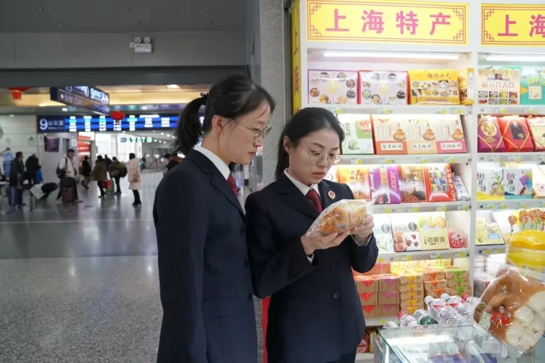 上海铁检院检察官走访上海站商铺,保障春运期间舌尖上的安全。