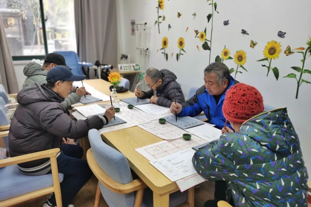 除了健康养生的快乐拍打操,书法课堂也备受欢迎,日托老人们手握毛笔,一笔一划地书写汉字之美。“孩子们今天都上班了,我也准时来报到,写写书法,修身养性。”居民茅叔叔微笑着说道。