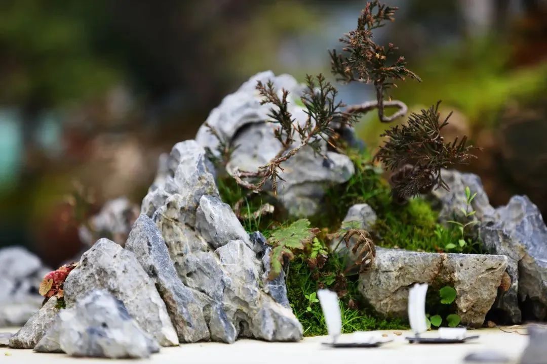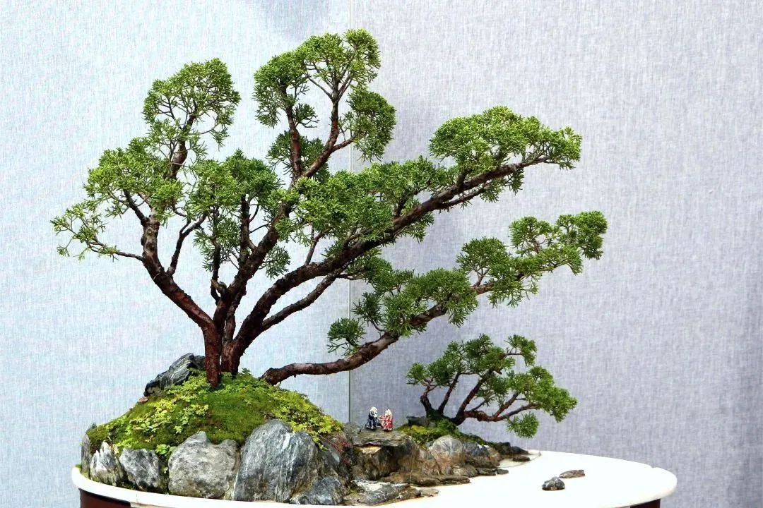 据了解,从一株普通的树苗到一幅盆景作品,需经过疏剪、截短杆、薄肥放养、铝丝攀扎整形、拆除铝丝、复整修剪、脱盆、换土等步骤,全程花费的时间不少都是以“年”为单位。“盆景艺术要有岁月的沉淀,年功越久,盆景越能呈现独特的韵味。”莫洪源说。