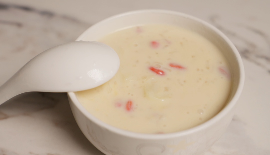 4.加入百合,再煮10分钟,出锅前加入枸杞。
