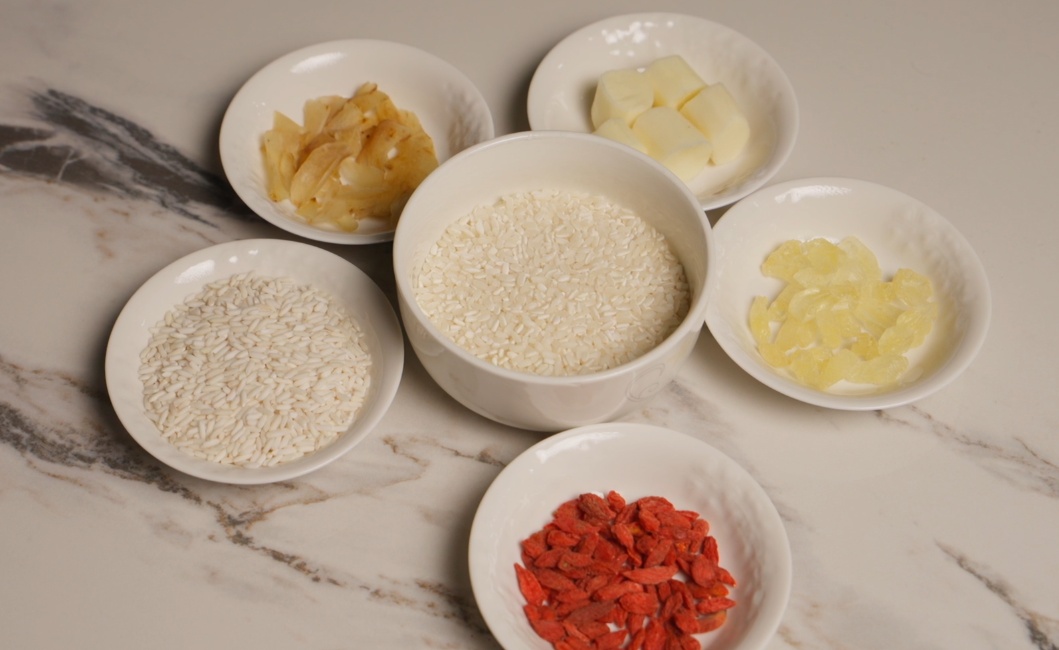 1.大米和糯米浸泡2小时,百合和枸杞浸水泡发。