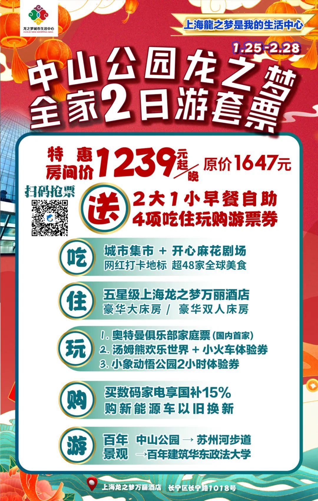 龙之梦城市生活中心发售“全家2日游套票”,整合“吃、住、玩、购、游”一条龙服务,7天实现销售额1.18亿元,同比增长11.15%。市民入住酒店可优惠品尝商场老字号城市集市美食,游中山公园苏州河步道等百年景观,同时可享受各类首店玩乐体验,购买汽车、家电、家居等补贴商品。