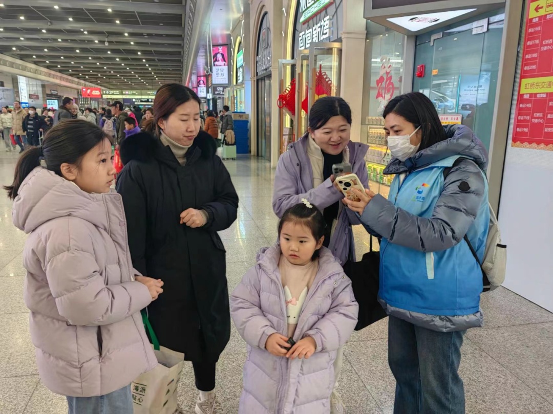 小小一个码,温暖归家路。年初六晚上,闵行区残联积极响应区委、区政府号召,抽派3名工作人员组成志愿者服务队,奔赴虹桥综合枢纽,开展春运服务志愿保障工作,为返程的旅客提供道路指引、场地咨询等服务。在5号点位的服务中,大家积极对照志愿服务手册,相互帮助,以最快速度了解并记住点位周边的情况,投身到志愿服务中。服务过程中,志愿者就遇到了准备换乘地铁的旅客,他们因不知在哪里乘坐地铁和如何买票,在原地干着急。点位志愿者看到情况后赶紧上前询问情况后,让旅客不要着急,积极为他们指引地铁入口方向,非常有耐心地一步一步指导旅客申请开通上海公交地铁的乘车码,直到乘车码出现在手机屏幕上,还详细叮嘱扫码进站的流程。虽然只是简单指导申请乘车码,但是极大便利了旅客换乘公交地铁回家,让他们也感受到便捷和温暖。志愿服务岗位位于地铁进站北2口,从2月3日年初六18点至24点,面对大客流人群进行有序疏导工作。期间有外地来的老人迷路,在出口处徘徊,区征收中心党组成员、副主任凌霜主动上前询问,了解情况后,帮助其在车站内寻找到来接她的家人,最终汇合;临近半夜,凌霜巧妙利用地铁线路延时运行优势,帮助打不到车的乘客规划地铁路线返家。2月3日立春,区征收中心土地征收科张翼飞第一次以志愿者的身份投入到春运旅客疏导工作之中,置身于硕大的虹桥火车站地下空间,面对着汹涌人潮,一开始也是“一脸懵”的。凭借着志愿者服务手册,以及同组小伙伴们之间的信息交流,他以最快的速度适应起了旅客疏导这项工作,化身“人肉导航”,微笑应对旅客们的询问,快速、准确地指引行进的方向。不光下车到站的旅客会不知所措,前来迎接的也会迷失方向,有这么一位大哥跟家人开着微信视频通话,但就是找不到刚下车的家人,急得团团转。张翼飞便主动上前询问,并提示他打开微信的位置共享,在看到他家人的具体位置后,耐心地告诉他如何从身处的北3下车口前往南2下车口。他边走边挥手道谢,连连感叹想不到虹桥火车站有这么多出口。供稿:区区级机关工作党委、区人大办、区政协办、区委政法委、区信访办、区档案局、区委老干部局、区红十字会、区残联、区征收中心转载请注明来自今日闵行官方微信