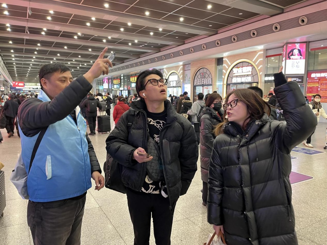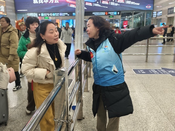 张芙铭表示从以往归心切切的乘客变为高铁站志愿者,换个角度体验了春运不同寻常的意义。“我们是‘实时在线的联络员’,我们也是‘接站地点的引导员’。”下午四点,一位语言不通的老人因找不到公交线路焦急地向她求助。“考虑到沟通困难,不确定去处地址,又担心指错公交线路,我决定采取一种特别的方式——跟她的子女视频通话,视频中,她的儿子告诉了我具体的地址,随后我将老人送上了闵虹2线,帮助老人顺利踏上了回家的路。”“我已经到车站了,在哪里接你啊?”“西出口在哪儿啊?我在地铁进站口”“姑娘,你帮我接电话听听,那是哪里啊?”这样的电话热线很多,志愿者通过判断亲属各自的位置,帮助他们指定最方便快捷的接站点,让亲人之间的距离更近温暖更深。人无论走到哪里,都比不上满满的安全感来得踏实!前来询问的旅客很多,大多是问方向,其实站内各种指示牌很清晰,但他们还是要询问志愿者一声加以确认,往小里想,是群众对志愿者的信赖,再深推,是对党和政府组织保障的信任。人大工作紧密联接人民,从志愿者岗位回到本职岗位后,他们将进一步增强做好新时代人大工作的责任感和使命感,踔厉奋发、积极有为,让更多人体会到人民城市的温暖和安全。“出发层怎么走”“T2航站楼怎么走”“P9停车场是哪个方向”“接人去哪个出口等”“虹桥天街怎么走”“新开通的市域铁怎么走”“厕所在哪里”……2月3日年初六,虹桥火车站迎来返程客流高峰,我们所在的四号点位位于B1到达层,前来询问的旅客络绎不绝。面对庞大的客流量、复杂的车站空间布局,郭超君很快熟悉了各个点位位置,引导旅客快速找到检票口、地铁站、网约车、卫生间等;为帮助旅客找到最合理的动线,陈艳把出发层、一层广场、公交枢纽站、停车场等旅客询问比较多的区域都走了一遍,实地勘探路线;周海云结合志愿者工作手册和自己网上查询的线路图,牢记虹桥枢纽站东、西公交上客点20余条线路,为需要乘坐公交车的旅客指明方向。 仅4号点位一处,我们为近百位旅客指引方向并提供帮助,成为旅客冬日里温暖的守护人,也用实际行动践行了“学习行、服务行、公益行”三行党员的责任与担当。大年初六中午至初七凌晨,区委政法委的志愿者们坚守志愿岗位,耐心、细致地为旅客朋友们提供道路指引、失物认领等各种咨询帮助。大家纷纷表示,看到旅客得到帮助后满意的情绪,自己感到无比的开心和快乐。他们用微笑、热情、奉献践行着志愿服务精神,也让来自五湖四海的旅客朋友切实地感受到上海这座城市的温暖。