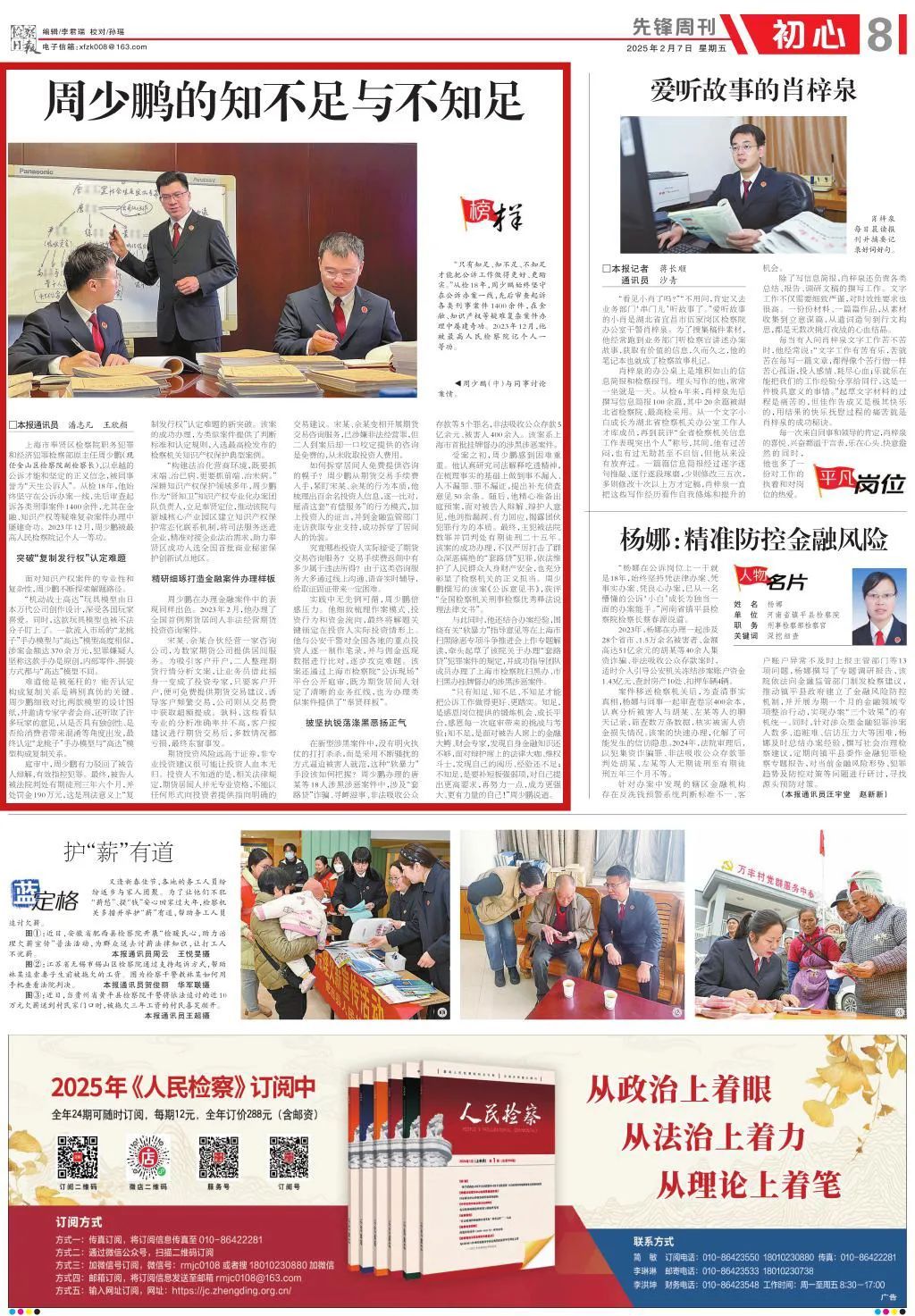 “只有知足、知不足、不知足才能把公诉工作做得更好、更踏实。”从检18年,周少鹏始终坚守在公诉办案一线,先后审查起诉各类刑事案件1400余件,在金融、知识产权等疑难复杂案件办理中屡建奇功。2023年12月,他被最高人民检察院记个人一等功。