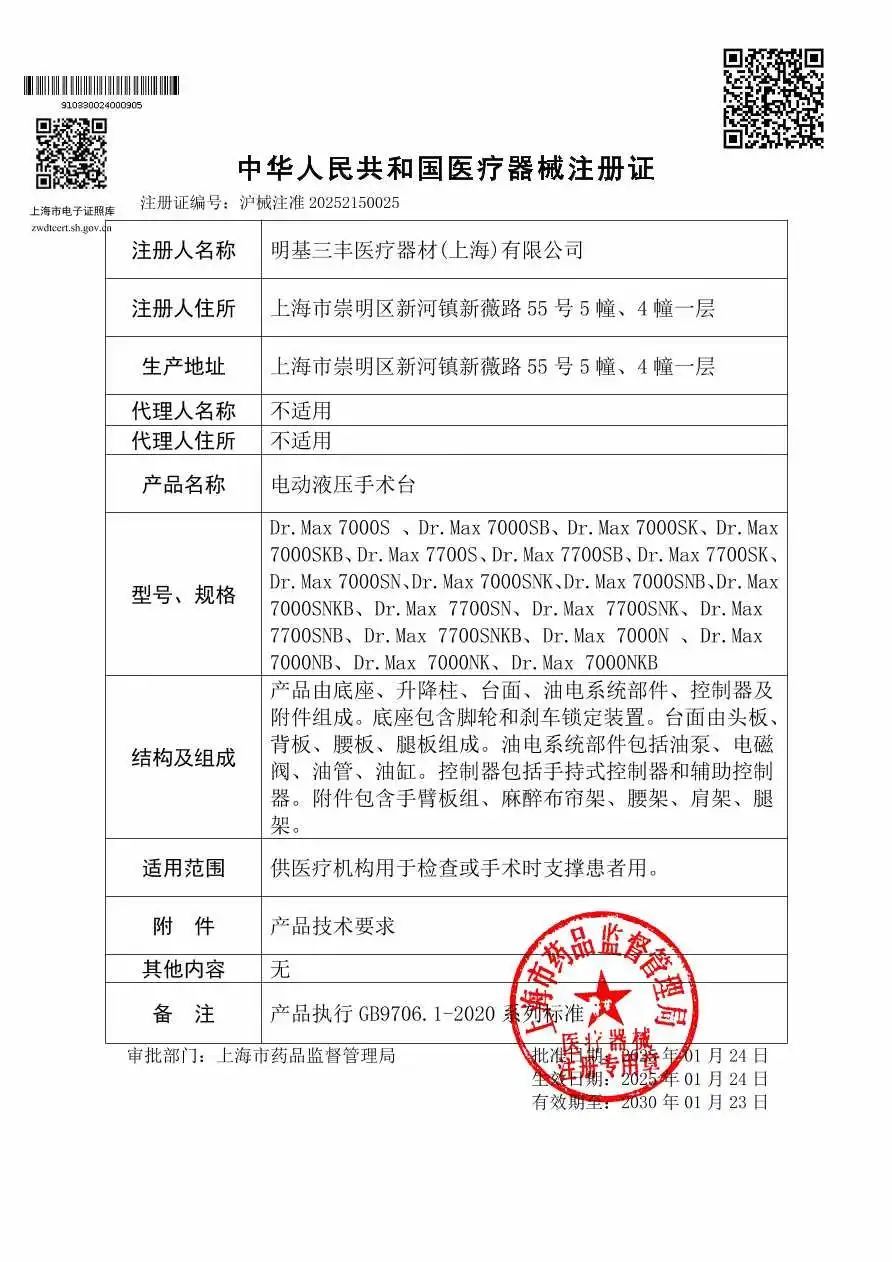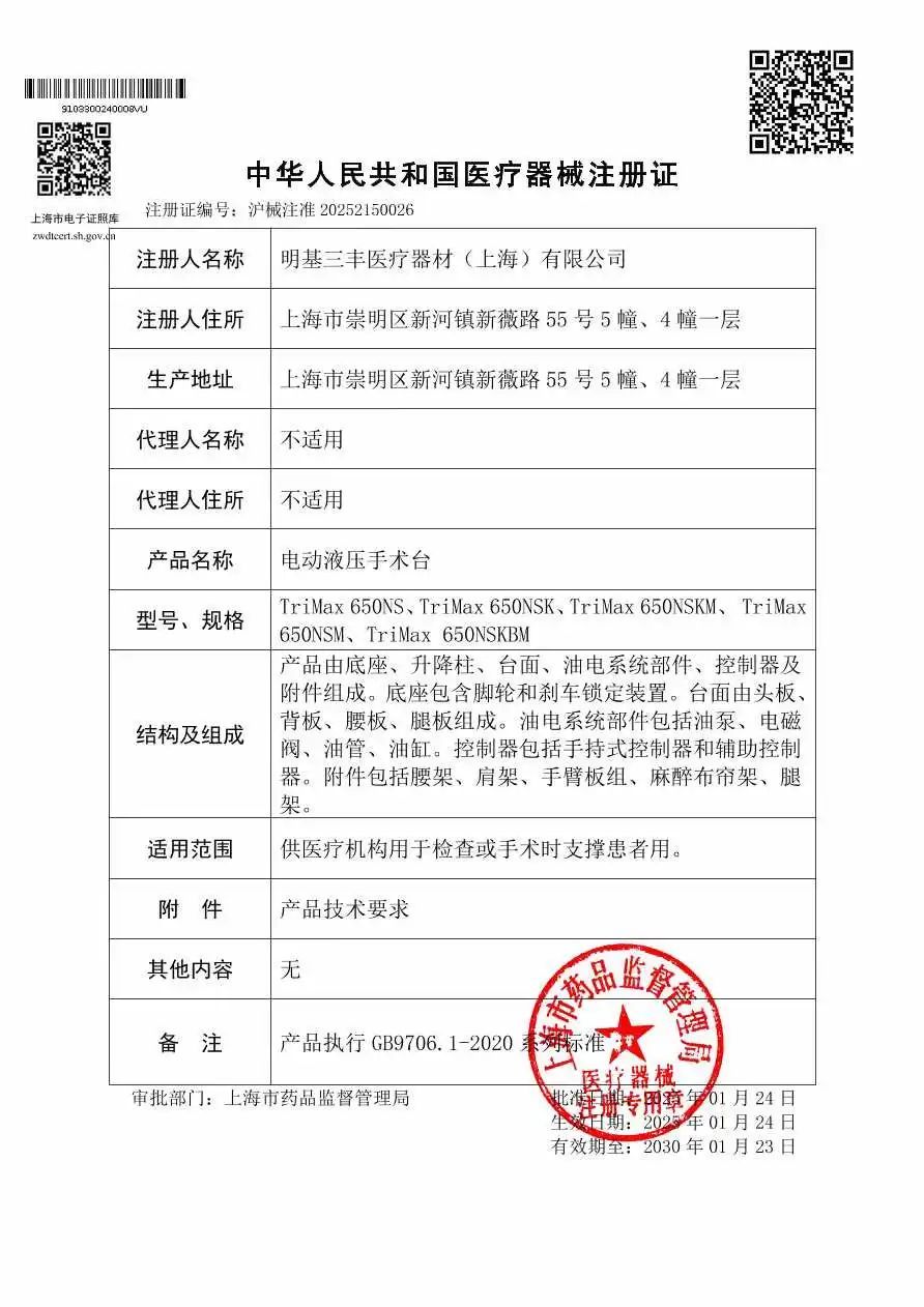 前不久,位于新河富盛开发区的明基三丰医疗器材(上海)有限公司的手术台取得了第二类医疗器械注册证。这意味着,企业的医疗器械产品离落地投产又加快了一大步。“这多亏了崇明区市场监督管理局给予我们企业及时、有效的帮助,让产品注册周期比预期缩短了半年,大大加快了我们产品上市的时间。”明基三丰医疗器材(上海)有限公司企业业务部经理陈俊宏激动地表示。
