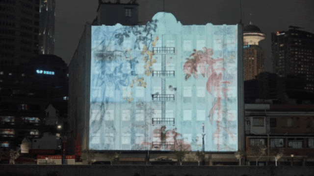 令观众印象深刻的东方之美,是《春回静安》光影秀的开篇——《万物生趣》,选用与苏河湾渊源颇深的画家吴昌硕,以及另一位海派大师刘海粟的画作,用灵动鲜活的光影形式带领观众开启一场跨越时空的春日之旅,感受东方艺术的细腻笔触与磅礴意境。