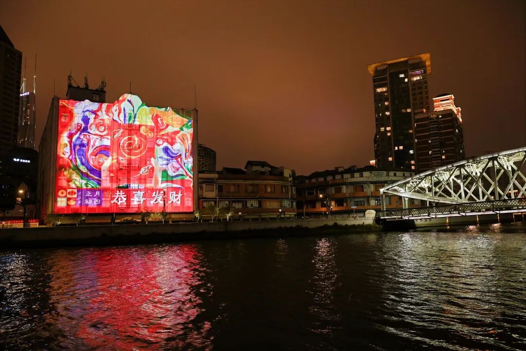夜幕低垂,华灯初上,光影在苏州河畔老建筑的墙面上跳跃,波光粼粼的河水成为流淌的画布,倒映出一幅幅唯美的画卷。“闪亮·上海”静安国际光影展(2025)之“闪亮·静安光影SHOW新春”正月迎春活动自大年初四正式面向公众开放以来,苏河湾亲水平台《春回静安》光影秀便成为网友们纷纷点赞的“浪漫水上‘烟花’”。