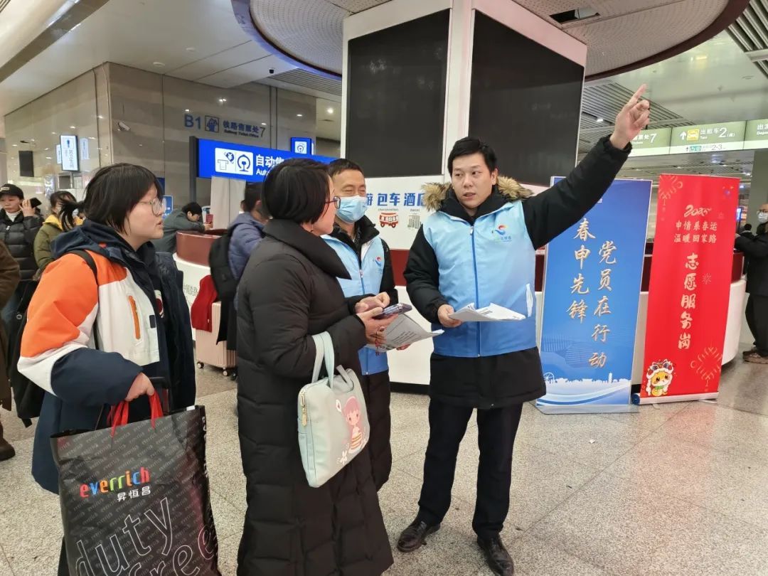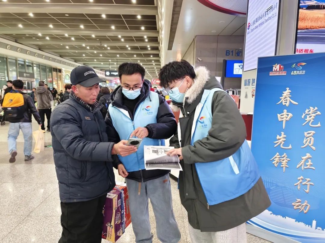 根据铁路部门预测,2025年春运期间虹桥火车站预计到发旅客1706万人次。为持续做好春运期间虹桥枢纽交通保障工作,闵行区组织1500名机关、街镇志愿者通宵增援,分布在现场6个重要点位,提供各类咨询、指引服务,直至2月8日。