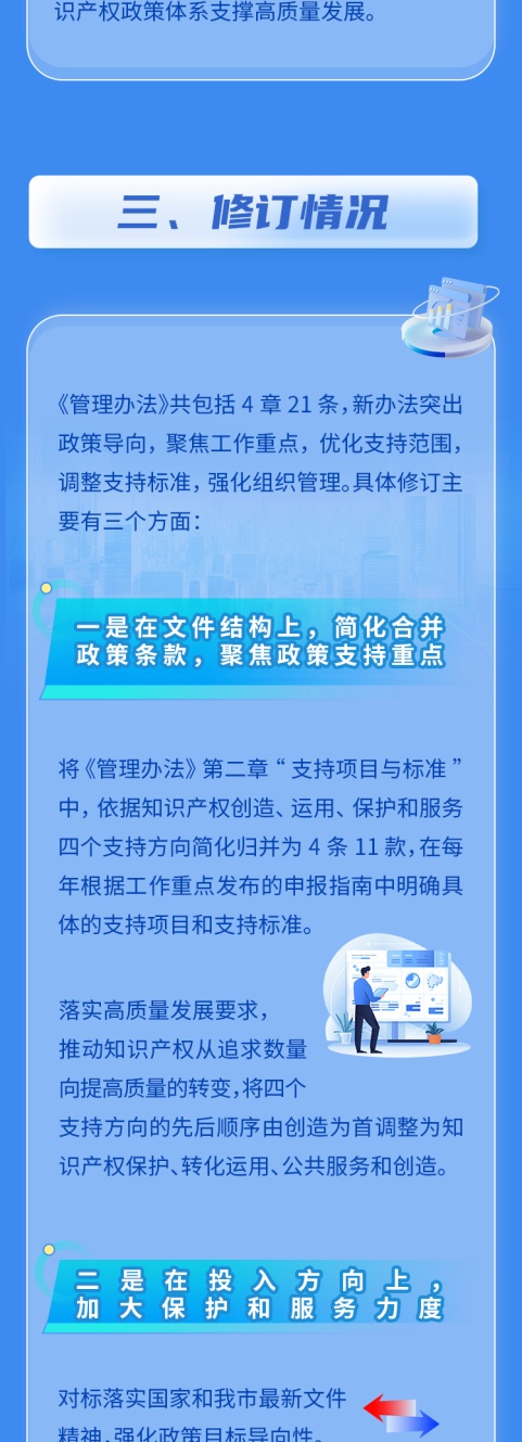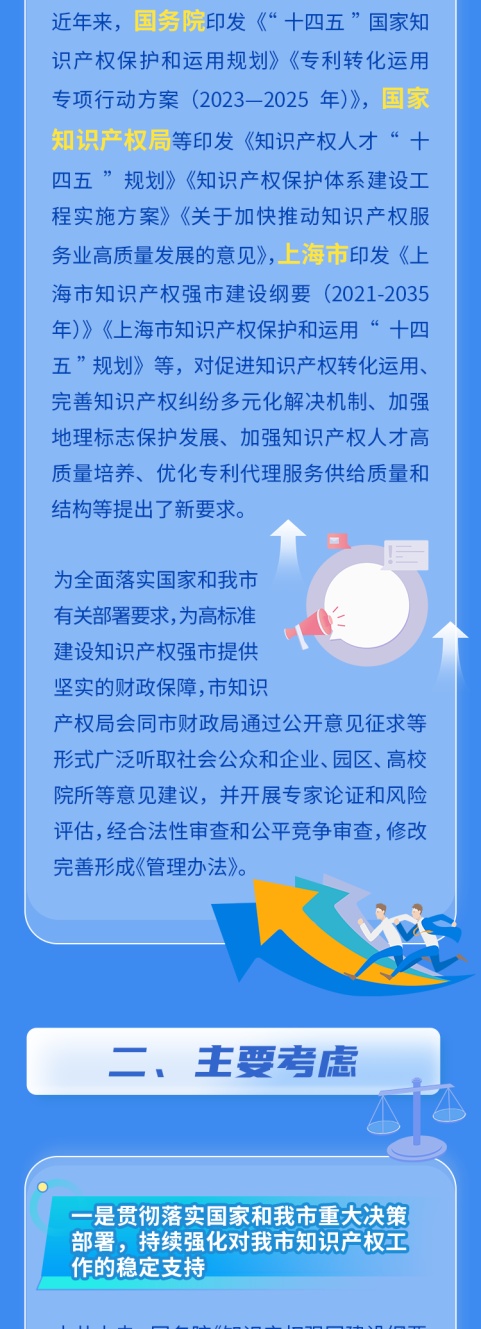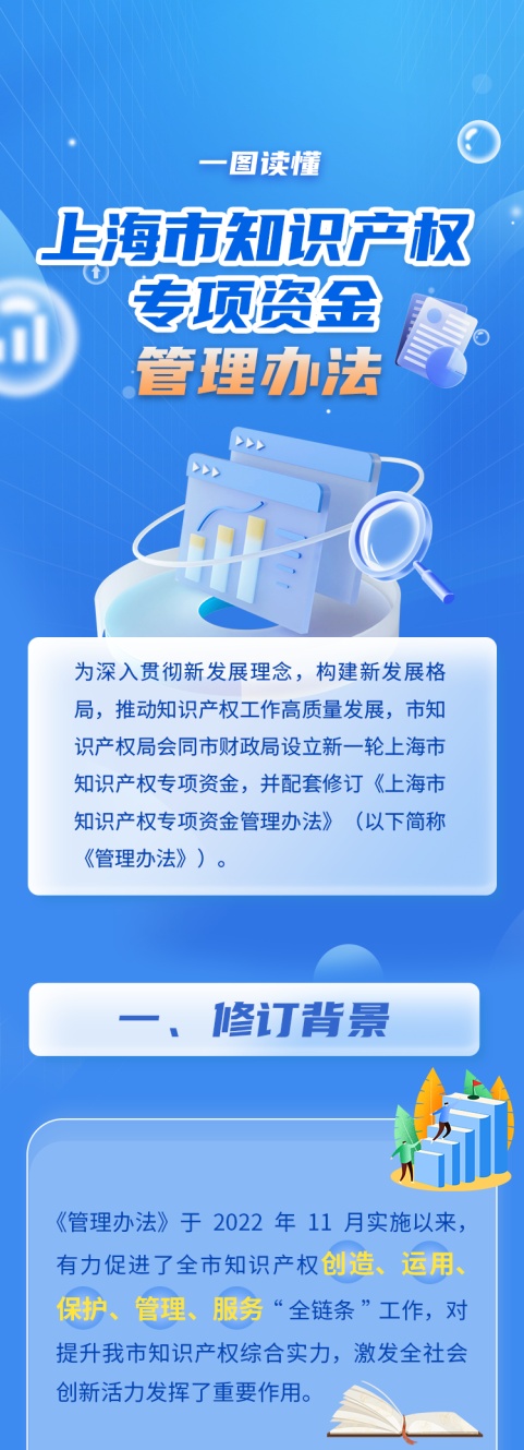为深入贯彻新发展理念,推动构建新发展格局,进一步提升本市知识产权创造、运用、保护、管理和服务能力,支撑上海具有全球影响力的科技创新中心建设和经济高质量发展,根据《中华人民共和国专利法》《中华人民共和国商标法》《上海市知识产权保护条例》等法律法规和相关政策要求,近日,市知识产权局会同市财政局设立新一轮上海市知识产权专项资金,并配套修订《上海市知识产权专项资金管理办法》。《管理办法》自2月21日起施行,有效期至2029年12月31日。2025年1月1日至2月20日参照执行。详情请看图解↓