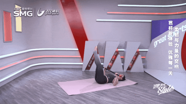 动作要点:躺下,双手大臂与身体保持45度夹角,手肘撑地,小臂垂直地面,双手握住芭杆,双脚伸直,绷脚背,脚尖指向天花板。每次双手伸直向上把芭杆推至锁骨时,单腿向下,脚后跟触地,弯曲手肘触底还原,交换腿触地。每次上推为一个,每组做20个。这个动作可以增强核心力量,特别是腿往下落触地时,需要控制下落速度。上肢推的力量和耐力,让手臂线条更好看。