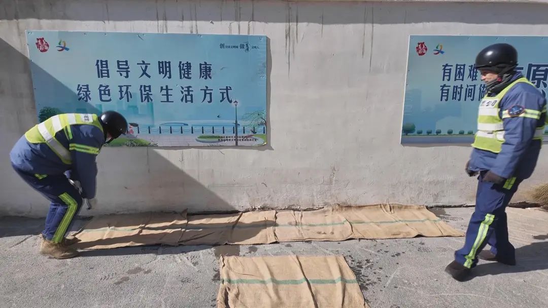随着寒潮的猛烈侵袭,今日早间市区气温骤降至零下4℃左右,创下了入冬以来的新低。低温导致市中心多处出现结冰现象,给市民出行带来不便。为此,黄浦区环卫部门迅速响应,提前制定了应急预案,并于今天凌晨5点全员到岗,全面排查并处理路面结冰等安全隐患。 在新桥路的一处建筑工地门口,地面上出现了大块的结冰。环卫工人们在发现这一情况后,立即采取行动。他们先用铲子将冰面铲碎,随后撒上盐以加速融冰过程。由于结冰面积较大,环卫工人们还在上面铺设了防滑麻袋,确保即使有行人通过,也能安全顺利地通行。 同时,在长沙路的人行道上,一处细小的结冰也没有逃过环卫工人的细心观察。他们迅速进行除冰作业,撒上盐融冰,很快就将这一安全隐患消除,使得行人来往更加安全通畅。 记者了解到,为了应对这次寒潮,环卫工人的开工时间比平常提前了半个小时。为了保障早高峰期间的交通顺畅,环卫工人们从5点开始就对各自辖区内的道路进行了全面的隐患排查,特别是结冰的路面,哪怕是一点点的微小冰冻也不放过。 欣昇时代环境工程有限公司市容管理科科长徐海峰在接受采访时表示:“今天一早,在管辖的区域内,我们已经按照提前制定的应急预案进行了部署。从早上开始,原本5点半的上班时间我们提前了半个小时,所有班组都已经到位,对辖区进行了地毯式的检查,排查是否有结冰的情况。对于较大的结冰区域,进行了撒盐、铺设麻袋等处理;对于较小的结冰点,则进行了撒盐和清扫。同时,也停止了所有洒水车的洒水工作,改为人工清扫,以避免因洒水而造成的二次结冰。”在环卫部门的迅速响应和努力下,市中心多处结冰现象得到了有效处理,市民的出行安全得到了有力保障。未来几天寒潮仍在继续,环卫部门将继续加强应急准备,确保在恶劣天气下能够迅速行动,为市民创造更加安全、便捷的出行环境。记者 / 邵林峰 瞿煌俊