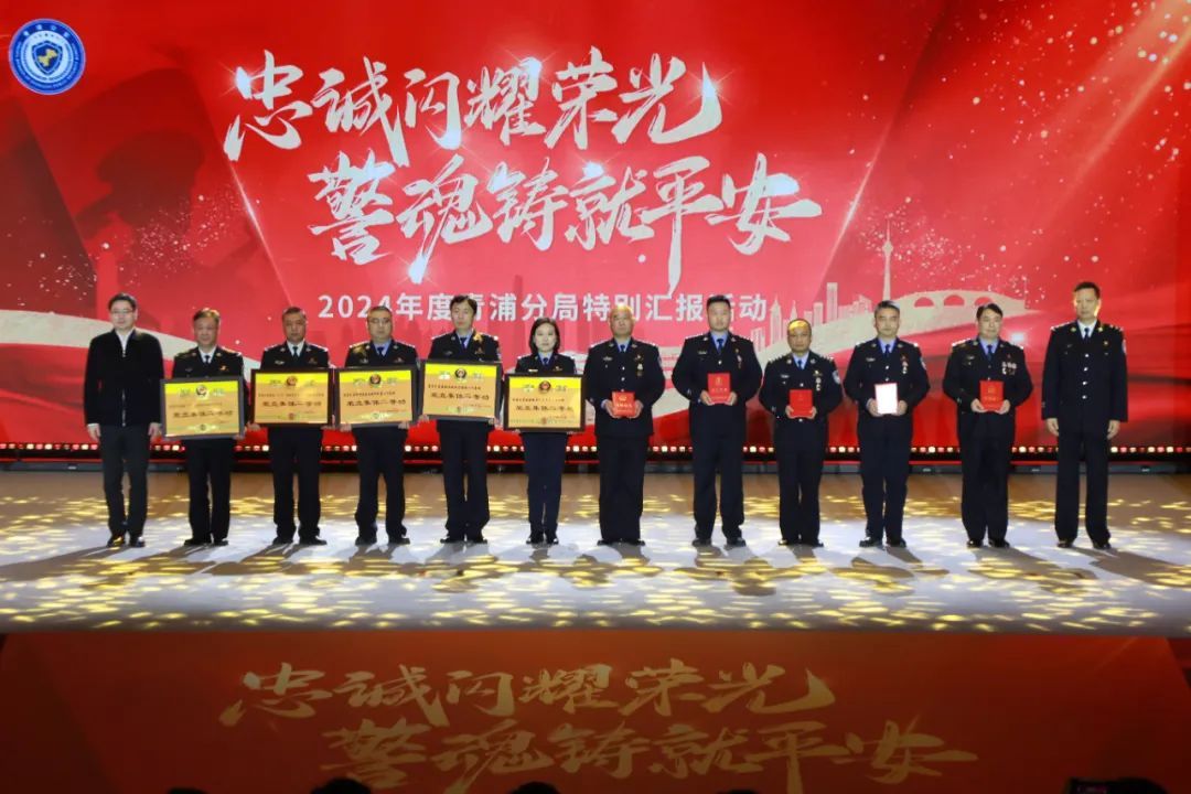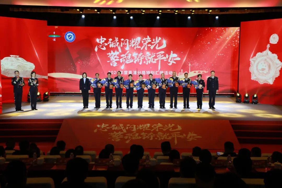 活动上,金晓明等为立功集体和个人颁奖,刘琪等为光荣退休民警颁发荣誉章。整场活动共分“信仰·使命显担当”“拼搏·奋进正当时”“引领·传承递薪火”“组织·忠诚续光荣”四大篇章,以视频短片、情景剧、报告剧、歌曲、朗诵、歌舞等形式,运用多媒体光影互动,真切地汇报了2024年青浦公安机关践行忠诚、奋力拼搏,努力维护社会稳定、守护人民平安取得的辉煌成绩。