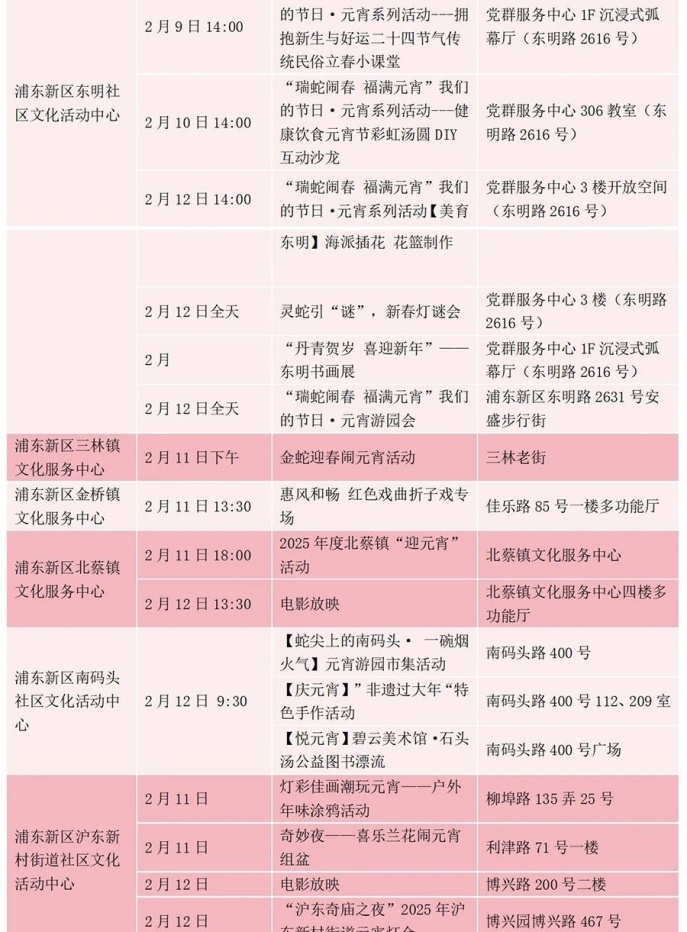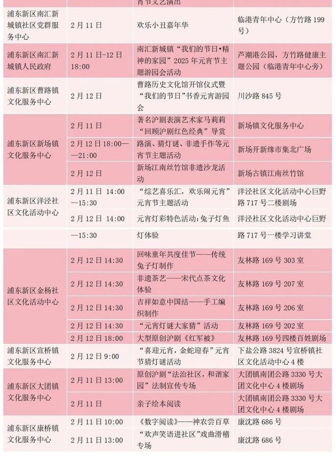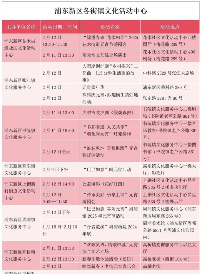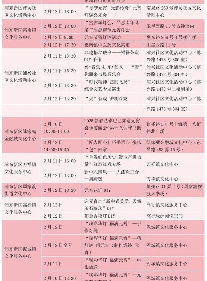 浦东新区各街镇文化活动中心元宵活动