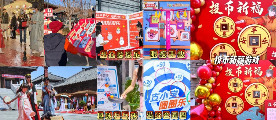 在八一路步行街设置春节民俗市集,主要内容为传统年俗美食、非遗美食技艺、文化创意体验、民俗商品销售等。设置4个打卡点可供游客打卡,同时在固定点位开展民俗体验、互动游戏和人偶互动,供市民游客拍照打卡和互动体验。