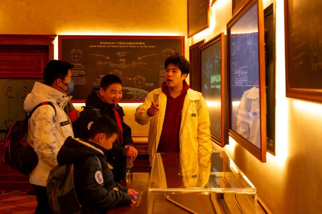在球幕影院里,仰望星空带来的震撼让孩子们对接下来的参观充满期待。从太阳系到银河系,从黑洞到暗物质,从古代天文仪器到现代航天科技,“家园”“宇宙”“征程”三大主题展区让孩子们目不暇接。