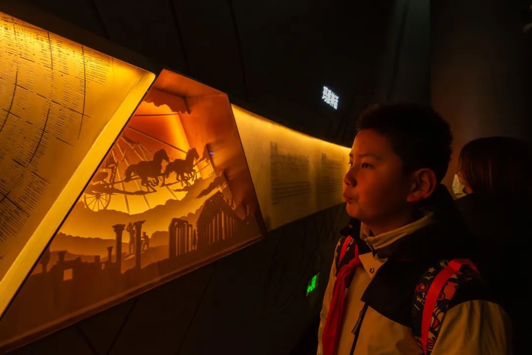 猜一猜古老的星座,摸一摸真实的陨石,孩子们在“家园”展区了解了地球的诞生、生命的演化以及人类对宇宙的探索历程。轻轻转动时光旋钮,在“宇宙”展区,大家沉浸在浩瀚星空的震撼之中,感受着宇宙的无穷奥秘。最后来到的“征程”展区,中国航天事业的辉煌成就深深地鼓舞着每一位孩子。