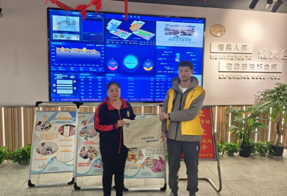 镇宁菜市场组建了志愿者团队,协助进行环保、低碳、“无废”宣传活动。在环境宣传月,组织开展了“绿色低碳,人人可为”主题活动,通过设置低碳无废知识展板、垃圾分类有奖竞答、发放环保袋等形式,广泛传播垃圾分类、全面禁塑和绿色消费理念。