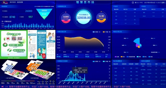 镇宁菜市场是上海市智慧菜场示范单位和静安区首批“一刻钟便民生活圈”数字化应用示范项目。借助互联网前沿技术,升级智慧化、数字化管理手段,实现了食品安全追溯、农副产品快检公示、移动支付、交易数据统计实时化、便捷化和可视化。每家商户都配备智能电子秤,实现过秤数据自动备份、电子化支付、商品管理,以及亮证亮照、明码标价等信息公示功能,全面推行“无纸化”管理,有效减少菜场废弃物产生。