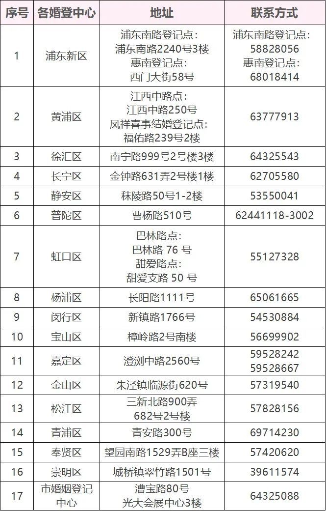附本市各婚登中心的地址和电话: