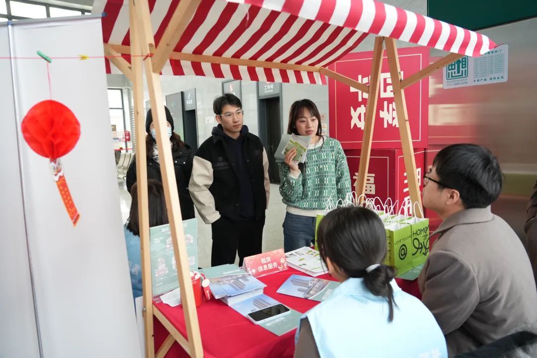 除了猜灯谜,现场还特别设置了租房信息、创业咨询、居住证政策咨询等暖心服务摊位,工作人员耐心解答旅客们的需求,帮助返沪的市民了解最新的生活信息。“很多返沪的乘客可能会面临租房的需求,我们的保租房今年5月就要供应了,所以也想让有需要的返沪乘客提前了解,感受到嘉定的温暖。”嘉住住房租赁公司员工陈晔介绍道。