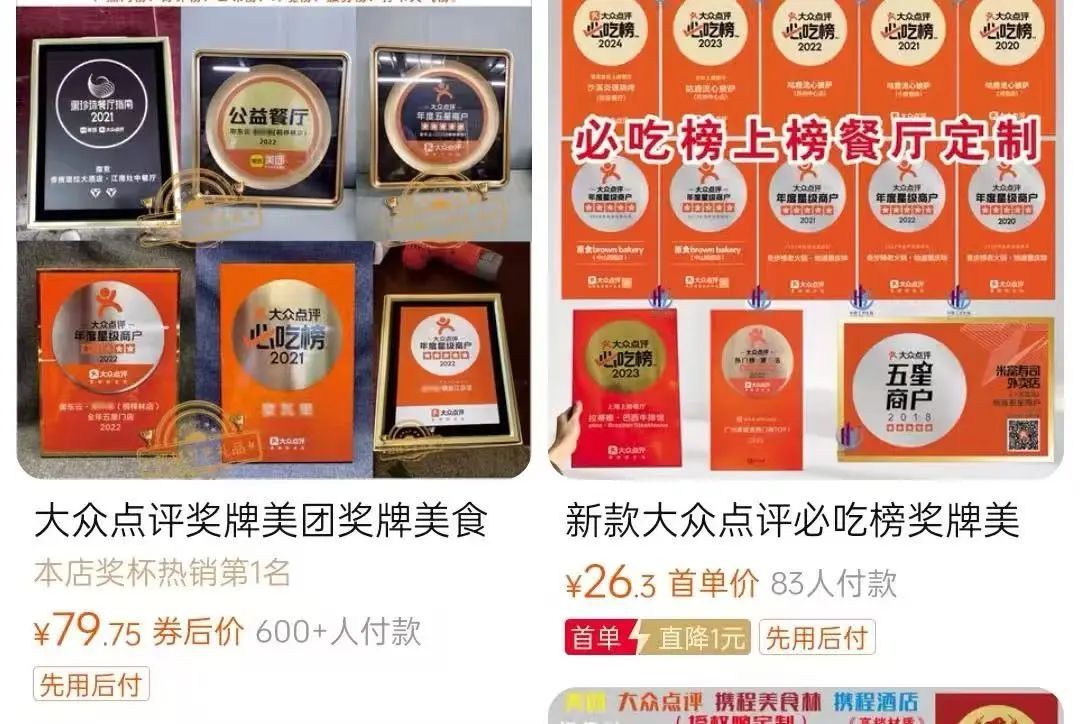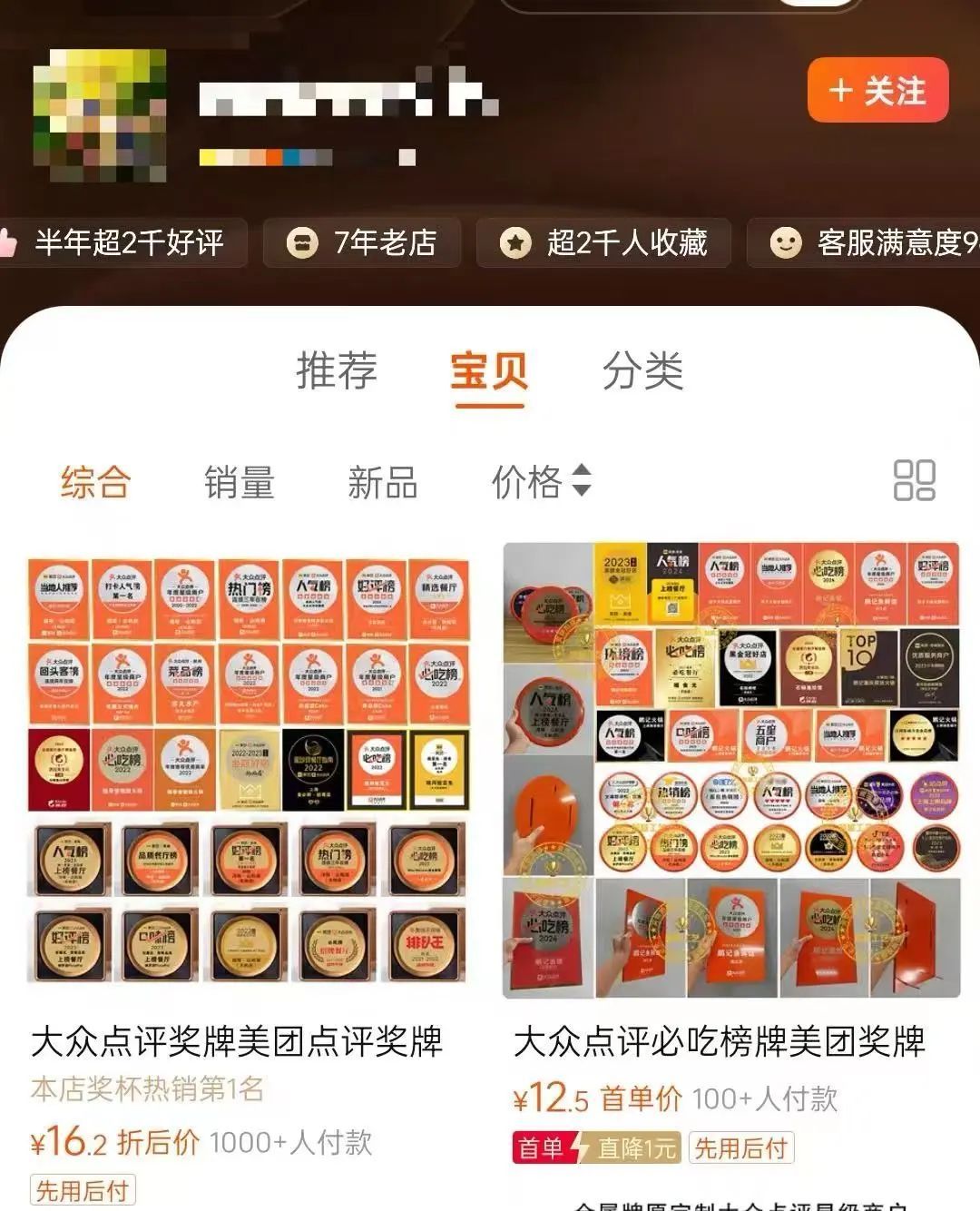 警方循线追踪,发现涉案的网店主营奖牌、奖杯制作,但同时也在销售该平台美食榜的证明牌匾。